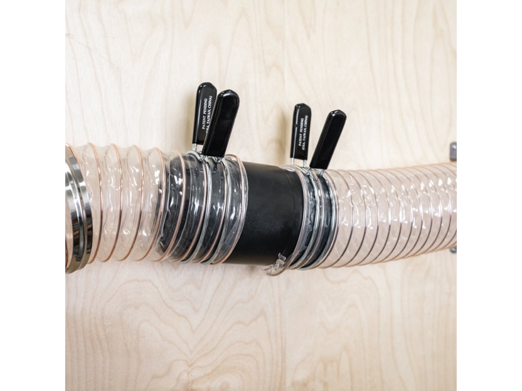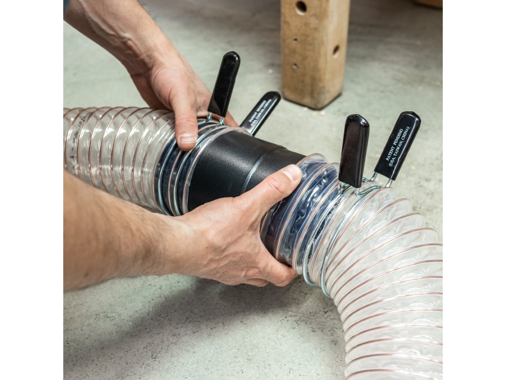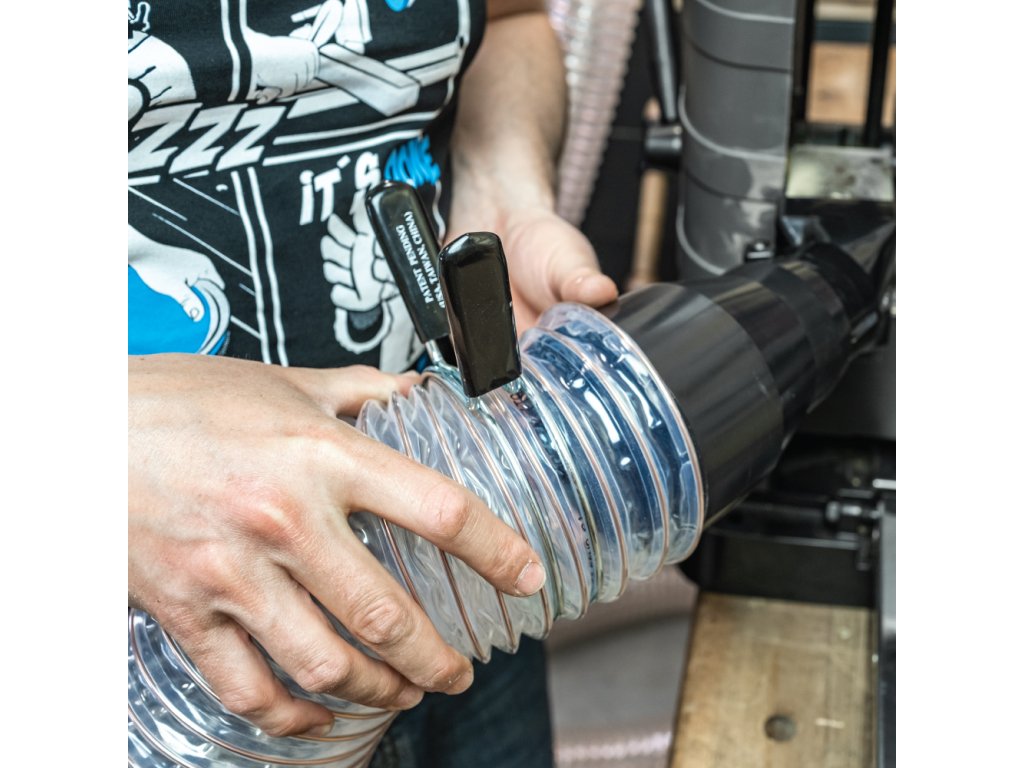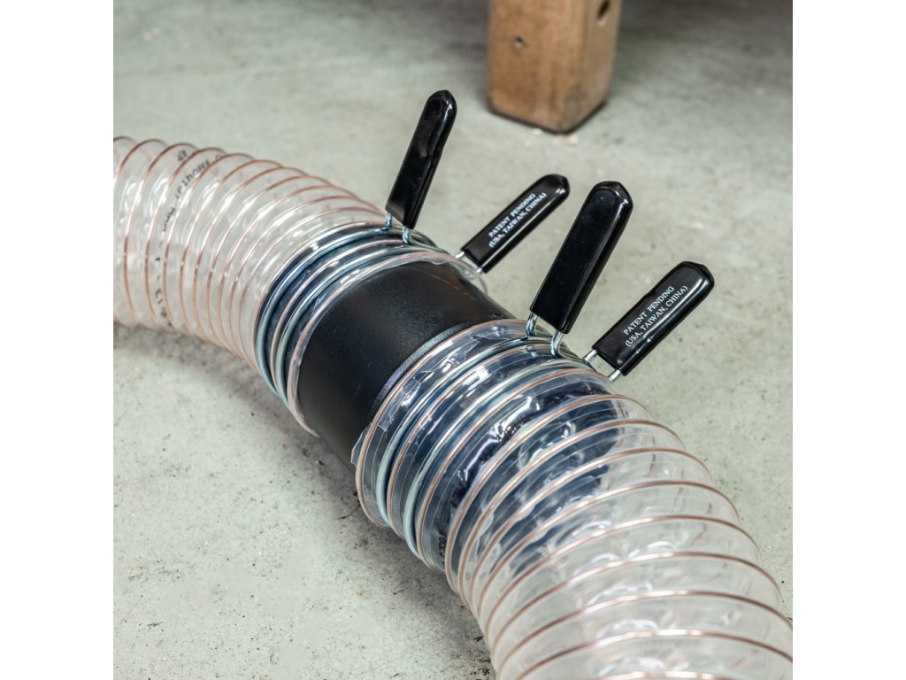 • Vhodná pro 100mm odsávací hadici. • Snadné použití bez nářadí. • Jednoduchá obsluha jednou rukou. • Tvarované rukojeti, které chrání Vaši ruku. • Balení po dvou kusech. Tyto ruční hadicové spony umožňují rychlou výměnu hadice 100 mm pro odsávání prachu z jednoho stroje na druhý. Spona funguje jako pružina a můžete jí ovládat jednou rukou. Ideální pro kutily nebo malé dílny. Nyní již nemáte žádnou výmluvu proč nepoužívat odsavač pilin a prachu. Rozsah 98 – 109 mm. Dodáváno v balení po dvou kusech.