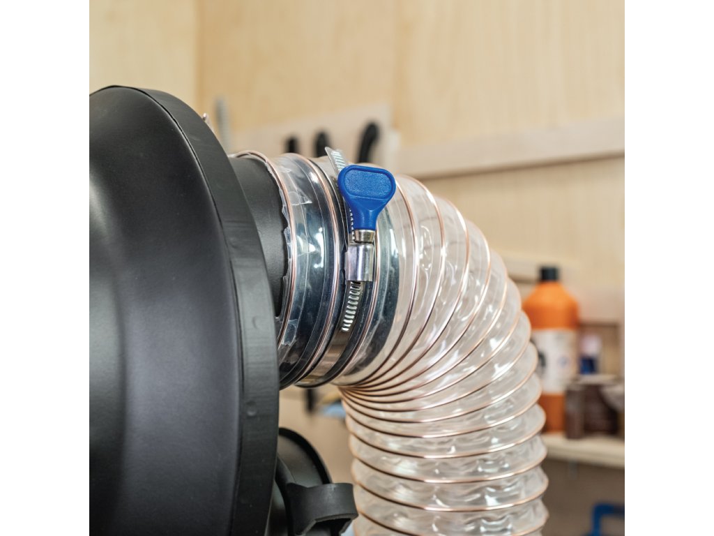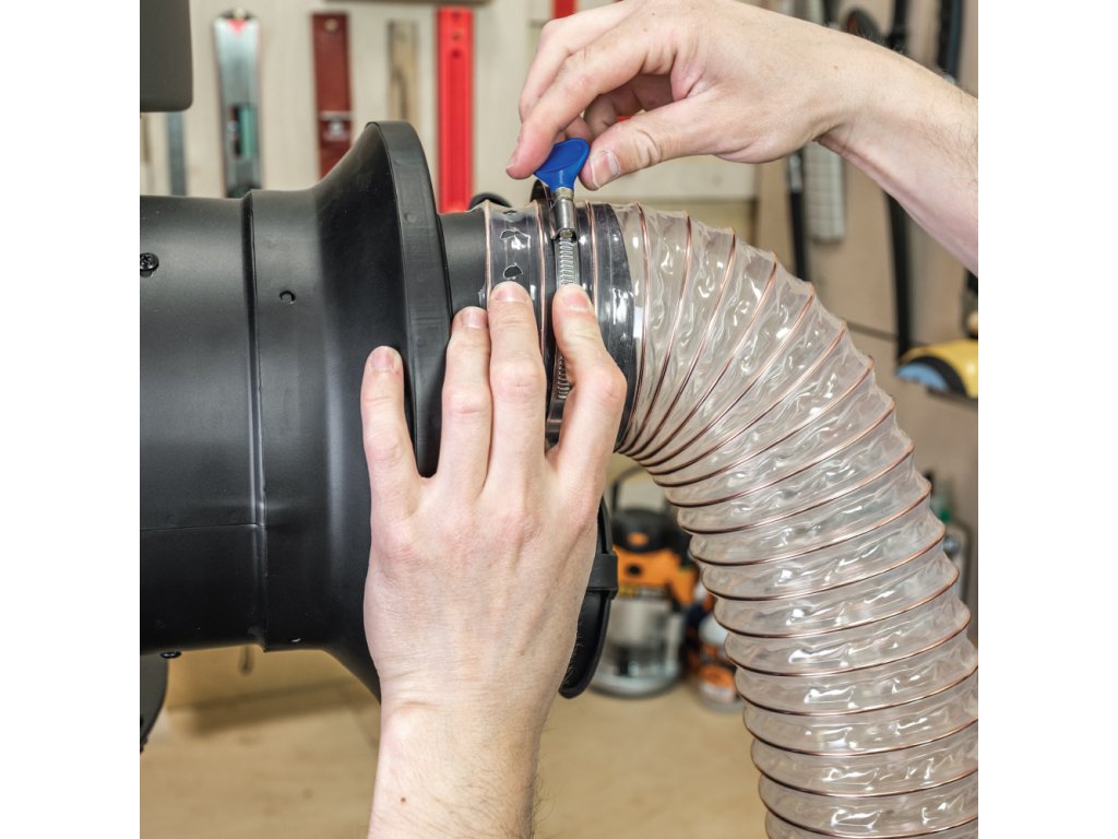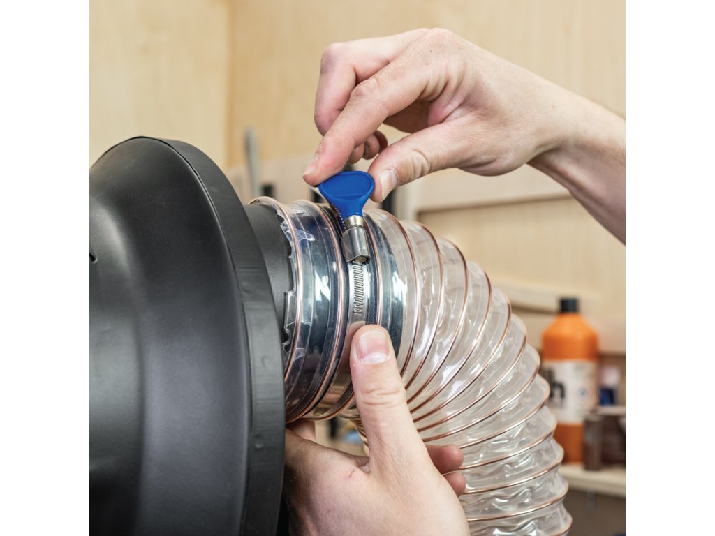 • Rychloupínací ocelová spona. • Dvojitý můstek pro drát hadice. • Plastová upínací motýlková rukojeť. • Ideální pro 100 mm hadice. • Dodávána po kusech. Jednoduchá ocelová upevňovací spona s plastovou rukojetí pro rychlé a snadné použití. Ideální pro upevnění 100mm odsávací hadice na hrdlo stroje nebo spojky. Rozsah 92 – 110 mm. Má dvojitý můstek pro drát hadice pro preciznější sevření. Obzvláště užitečná při ucpání odsávacího systému, pokud potřebujete rychle sundat hadici bez použití šroubováku.