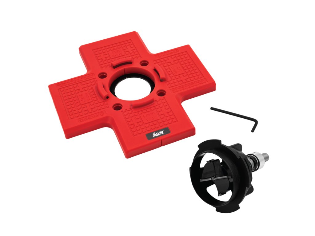 Šablona pro vrtání misek pantů zaručuje rychlou a přesnou instalaci 35mm pantů bez zdlouhavého měření. Nastavitelné odsazení 3–6 mm od hrany dvířek. Magnetická šablona pro přesné vrtání otvorů pro vruty usnadní montáž pantů značky Blum, Strong i Hettich. Ideální pro nábytkáře.