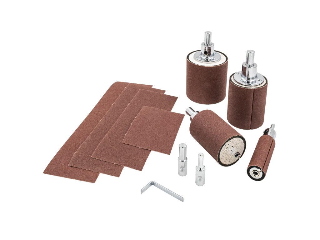 • Praktický upínací systém pro snadnou výměnu brusného pásu.• Výměnné upínací trny.• Lze použít v ruční i stojanové vrtačce.• Baleno v kartonové krabici.Sada 4 kusů brusných válečků je určena pro snadné a rychlé dosažení dokonale hladkých povrchů u všech zakřivených a kulatých dílců. Brusné válečky mají praktický upínací systém pro snadnou výměnu pásu. Doporučujeme použít pouze brusné plátno, u papíru může docházet k častějšímu roztržení. Na každý brusný váleček může být použit trn podle velikosti sklíčidla Vaší vrtačky. S brusnými válečky lze pracovat ve stojanové vrtačce. Menší průměry 25mm a 53mm můžete použít i v ruční vrtačce. Doporučené otáčky 1000 - 1500 ot./min dle průměru válečku a materiálu. Malý průměr -> vyšší otáčky, větší průměr -> nižší otáčky.Balení obsahuje:• 4 ks brusných válečků o průměru 25 mm, 53 mm, 63,5 mm a 75 mm a brusné výšce 75 mm• Upínací trny 3 x 12,7 mm, 1 x 10 mm a 2 x 6,35 mm• Klíč pro povolení brusného papíru• 4 náhradní brusná plátna