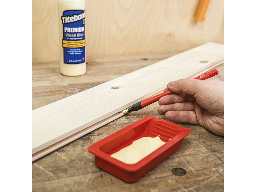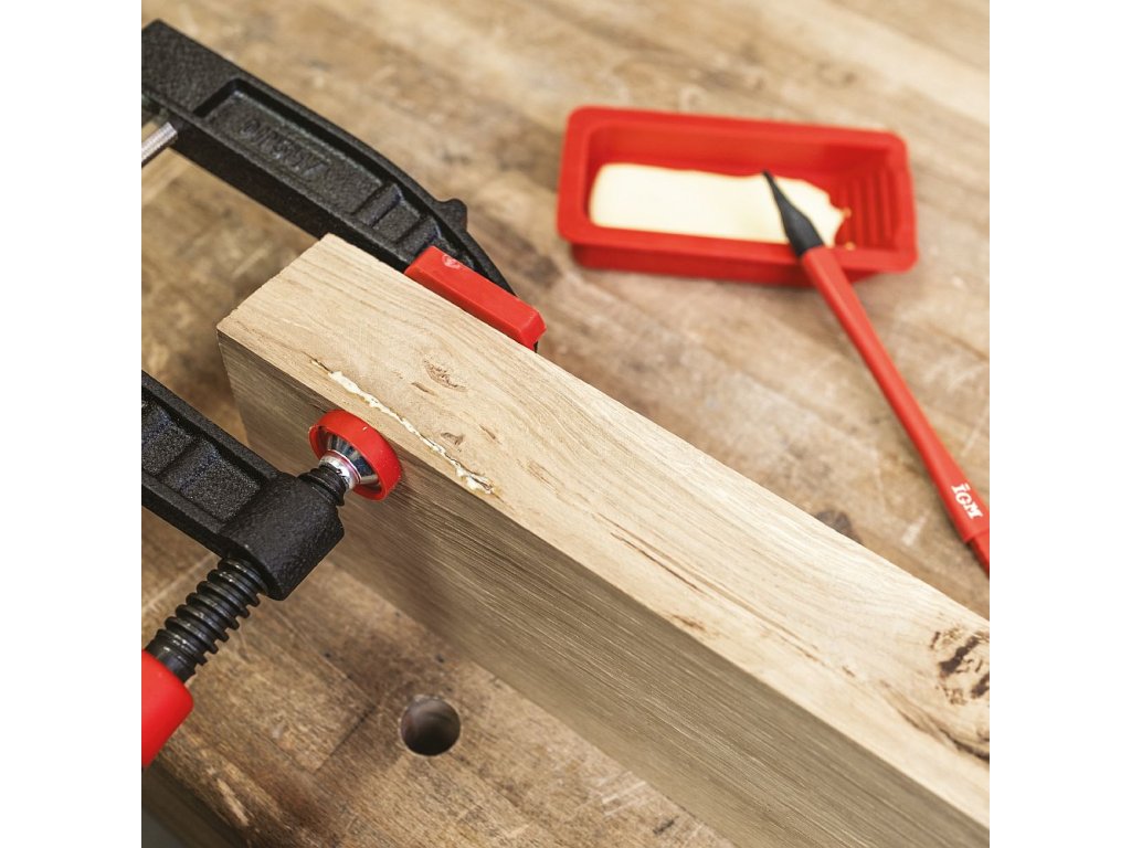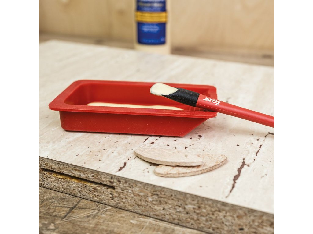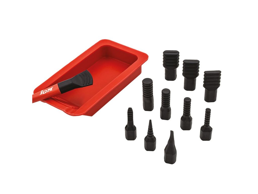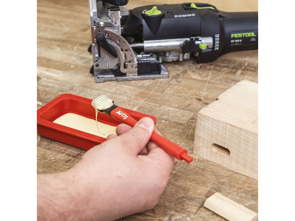 IGM Silikonové nástavce pro pohodlné nanášení lepidla na dřevěné spoje. S vaničkou a deseti aplikátory na kolíky, DOMINO, lamely, drážky a další otvory. Snadno čistitelné.