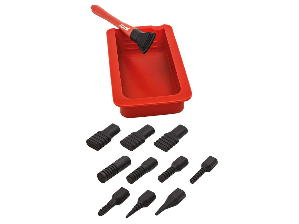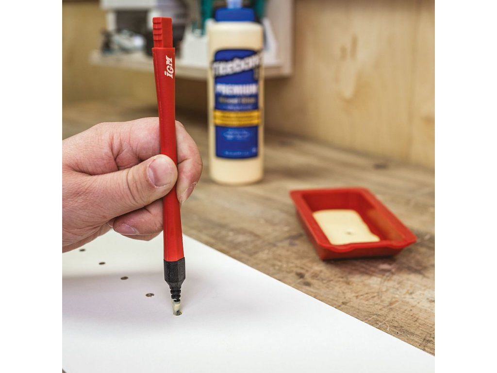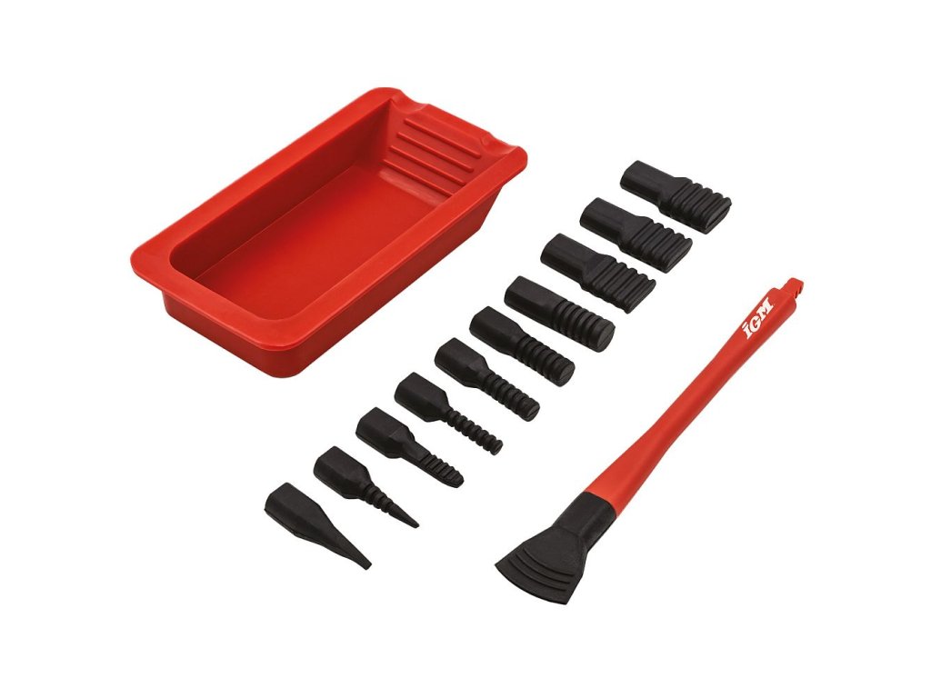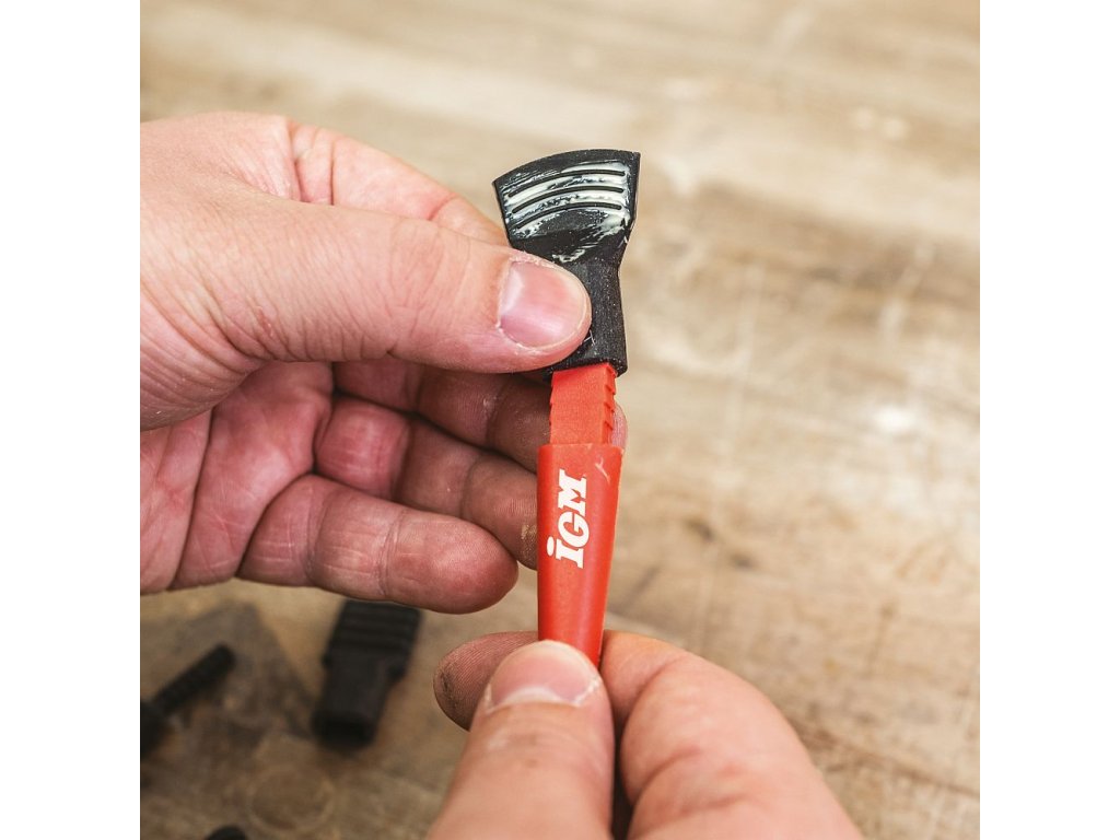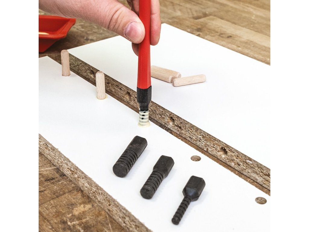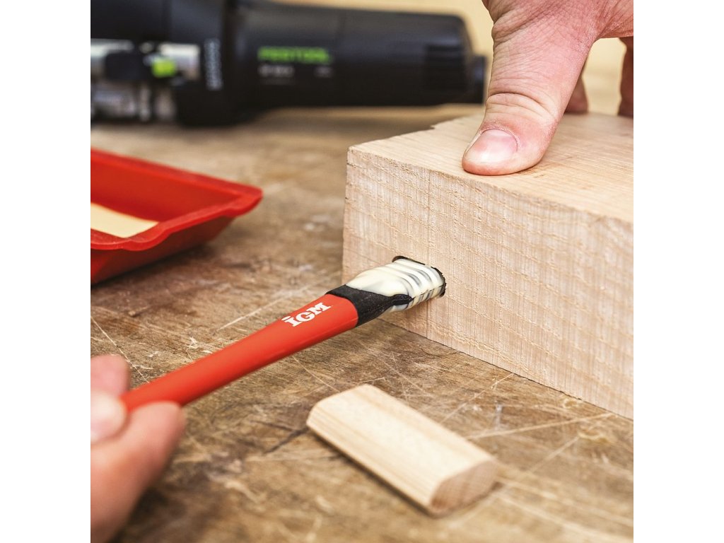 IGM Silikonová sada s aplikátory v 10 velikostech vám usnadní nanášení lepidla do otvorů pro kolíky, DOMINO kolíky či lamely, a také do drážek, spár nebo jiných otvorů. Měkké silikonové nástavce rovnoměrně rozetřou lepidlo po celé ploše dřeva uvnitř každého otvoru.