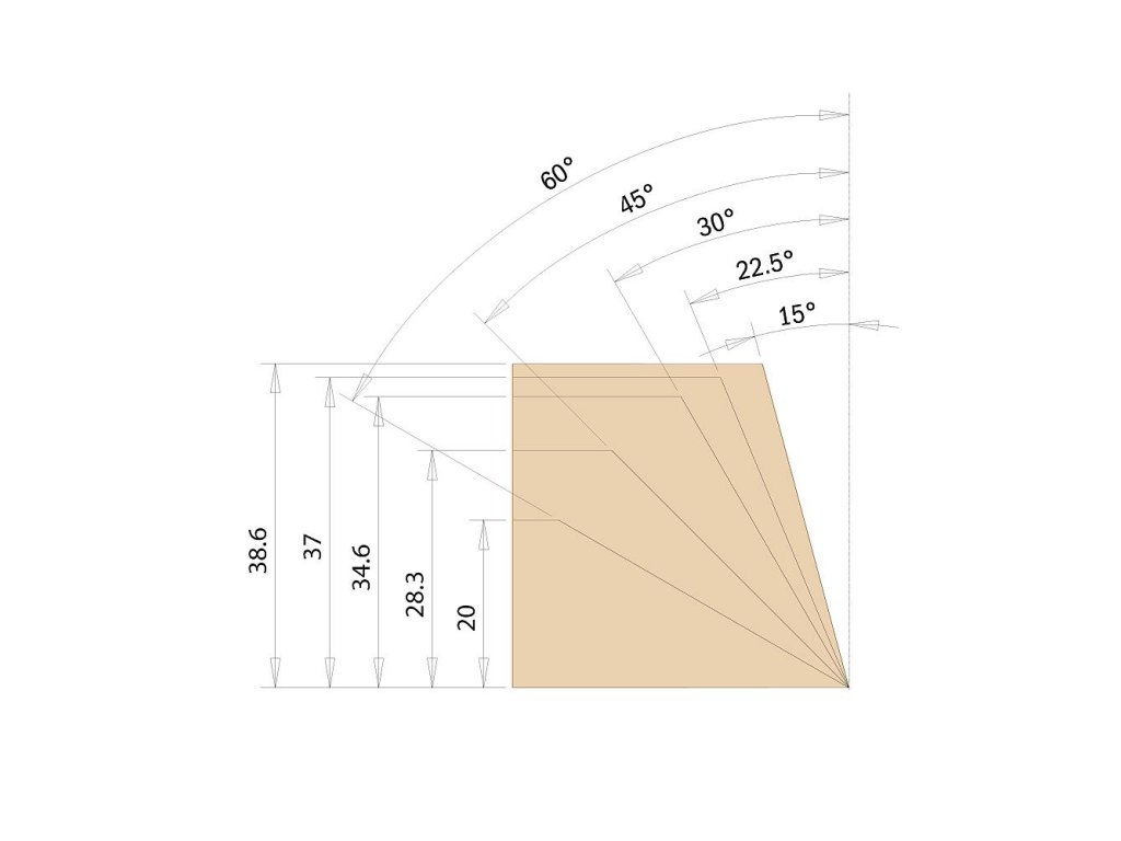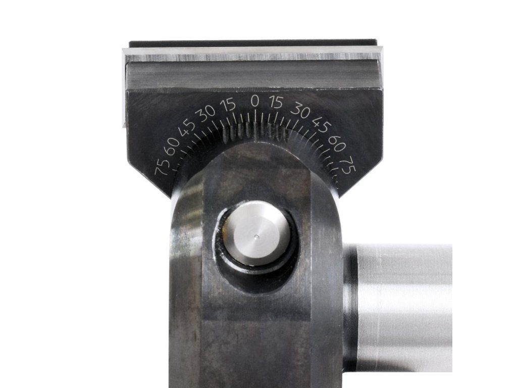Ocelové tělo nástroje, dvě otočné žiletky na nastavitelných nosičích. Rozsah úhlu otočení je směrem nahoru 0-45° a dolů 0-90°, nekonečné množství různých nastavení na přesné stupnici. Pro jednoduché nastavení jsou každých 7,5° přednastavené zarážky. Pro výměnu žiletek není třeba měnit nastavený úhel. Pravotočivé provedení.