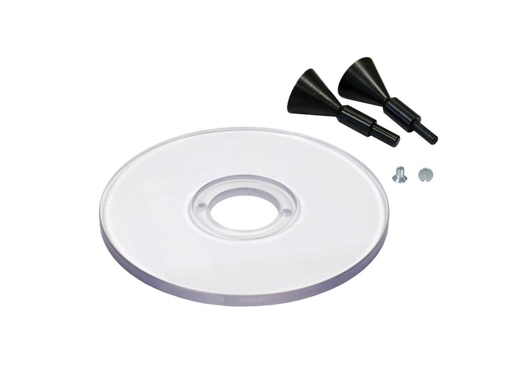 Do některých typů horních frézek není možné přímo upnout kopírovací kroužek. Frézovací deska se připevňuje k základně horní frézky a tím umožňuje upnutí IGM kopírovacích kroužků. Kroužky využijete pro cinkovací přípravky FD300 &FD600, šablonu pro spoje kuchyňských desek FK650 nebo pro kopírování dle vašich šablon.Univerzální frézovací deska je vyrobena z průhledného PETG plastu o průměru 170mm. Otvory pro upnutí lze jednoduše a rychle provrtat a desku připevnit k základně frézky. Je určena pro jakýkoliv typ horní frézky.Součást balení:• Univerzální průhledná frézovací deska D170 mm• Středící trn S8/S12 mm, D32x72 mm• Středící trn S6,35/S12,7 mm, D32x72 mm• 2ks Šroub se zápustkovou hlavou M5x8