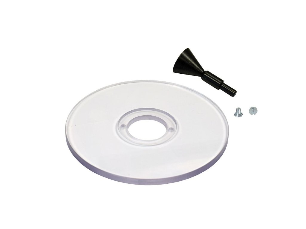 Do některých typů horních frézek není možné přímo upnout kopírovací kroužek. Frézovací deska se připevňuje k základně horní frézky a tím umožňuje upnutí IGM kopírovacích kroužků. Kroužky využijete pro cinkovací přípravky FD300 &FD600, šablonu pro spoje kuchyňských desek FK650 nebo pro kopírování dle vašich šablon.Univerzální frézovací deska je vyrobena z průhledného PETG plastu o průměru 170mm. Otvory pro upnutí lze jednoduše a rychle provrtat a desku připevnit k základně frézky. Je určena pro jakýkoliv typ horní frézky.Součást balení:• Univerzální průhledná frézovací deska D170 mm• Středící trn S8/S12 mm, D32x72 mm• 2ks Šroub se zápustkovou hlavou M5x8