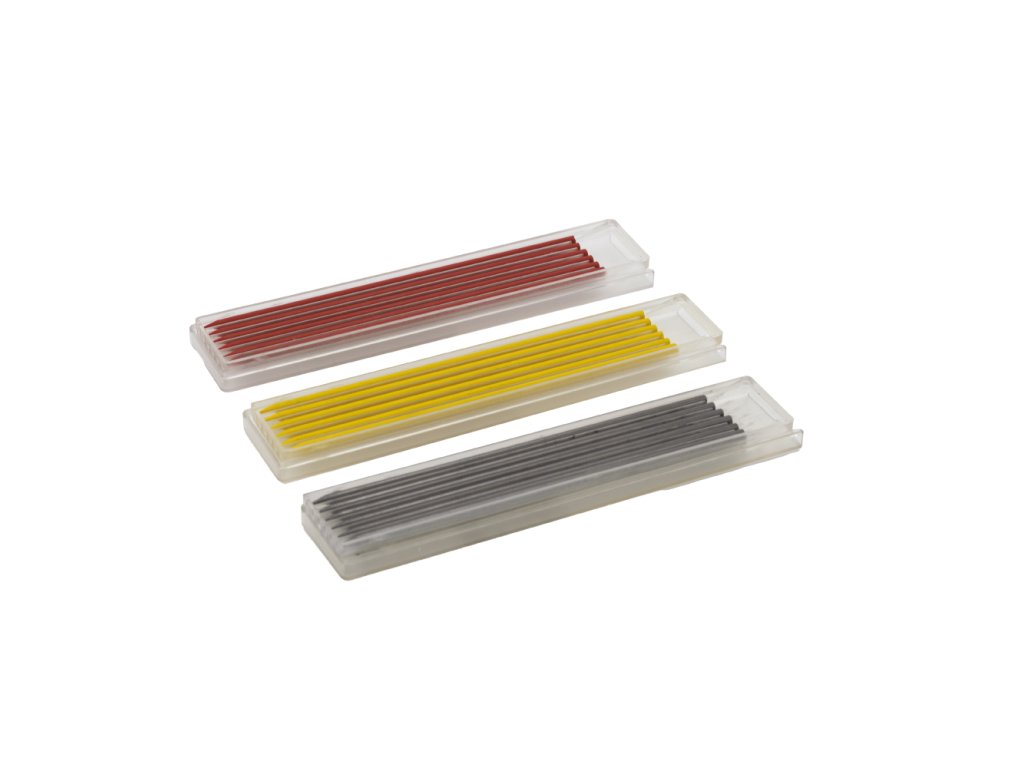 Voskové tuhy jsou vhodné na: papír, dřevo, lamináty, kámen a umělý kámen, kovy a neželezné kovy, zednické práce, plasty, keramiku, sklo.• Průměr tuhy 2,8 mm.• Délka tuhy 120 mm.Součást balení:• 6 ks žlutých voskových tuh