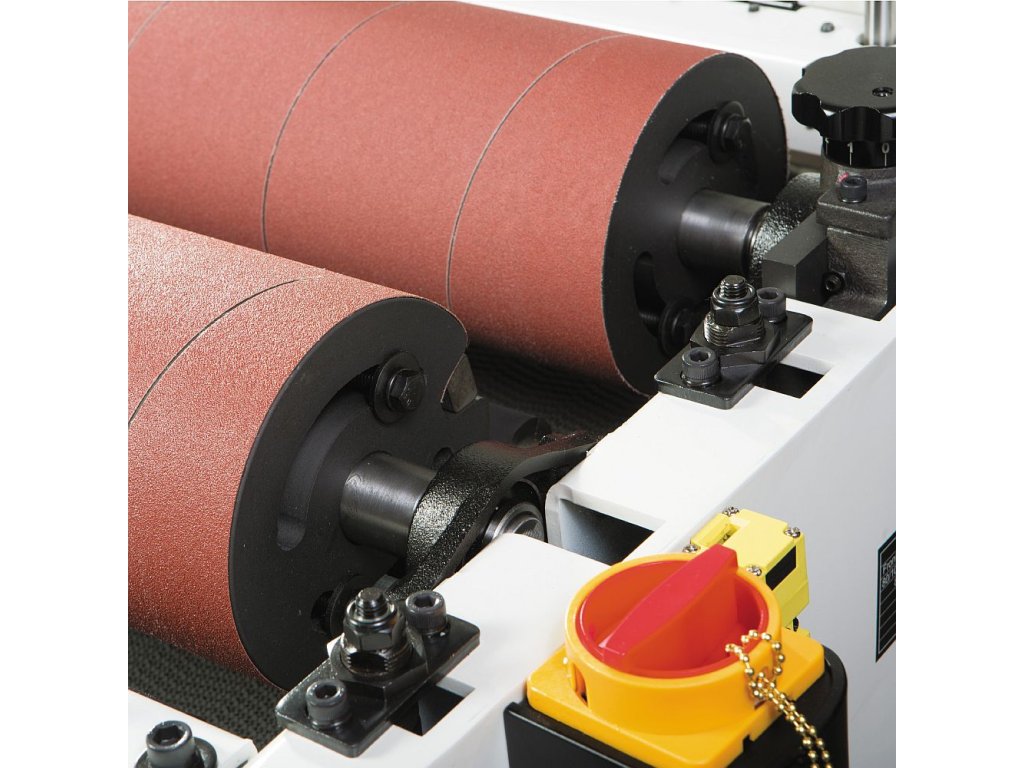 Dvouválcová bruska má pevnou a silnou ocelovou konstrukci a výkonný motor. Dva 152 mm brusné válce jsou vyrobeny z přesně opracovaného duralového odlitku a jsou perfektně vyváženy a pogumovány. Umožnují finální úpravu povrchu na jeden průchod. Přední válec je osazený hrubým brusivem pro efektivní úběr a zadní válec s unikátním mikronastavením, které umožňuje nastavit rozdíl oproti prvnímu válci, je určený pro jemné dobroušení. Brusný pás šířky 75 mm nebo 100 mm je spirálově navinutý na brusný válec a upnutý chytrým systémem upínacích klínů což umožňuje rychlou a snadnou výměnu. Pro kvalitní fixaci brusného pásu jsou válce pogumovány.