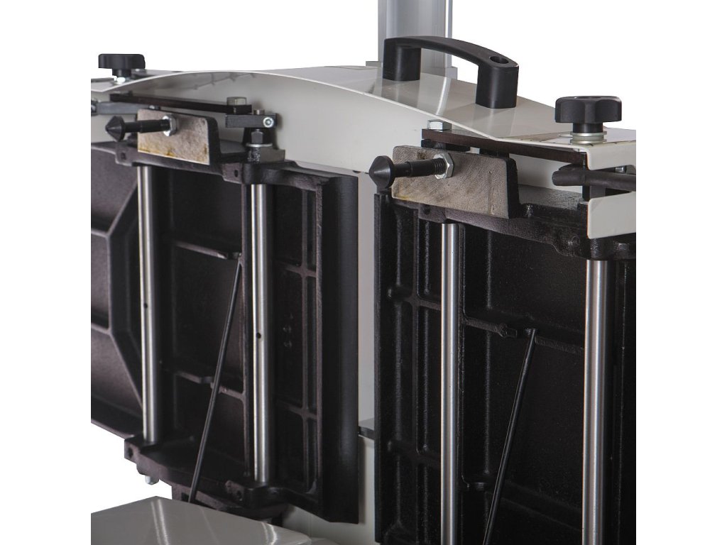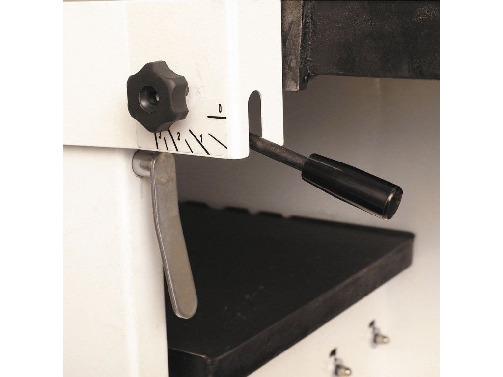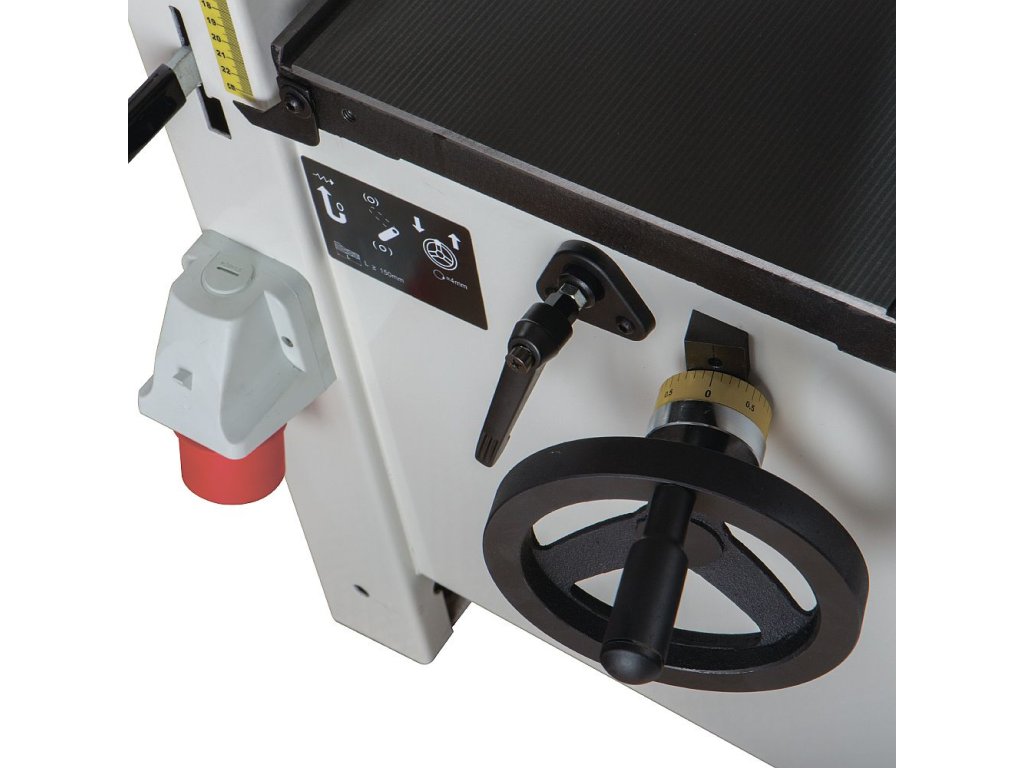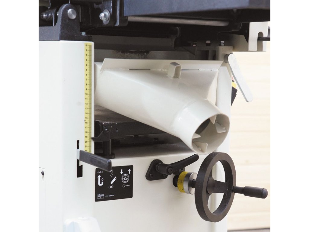 Pohodlně pouze jednou rukou lze zvednout litinový stůl. Přechod od srovnávání k tlouštkování nemůže být jednodušší. Se svým dlouhým stolem a přesným pravítkem je zde přesnost standardem, stejně jako vždy výborný povrch díky 3 nožové hlavě. Nastavení výšky vstupního stolu pomocí excentrické páky je jednoduché a snadné. Možnost nastavení výšky výstupního stolu excentrem. Odsávací hubice udržuje stroj čistý při připojení k vhodnému systému odsávání. Stroj pro profesionální dílny nebo údržby i kutily s širokým rozsahem použití.