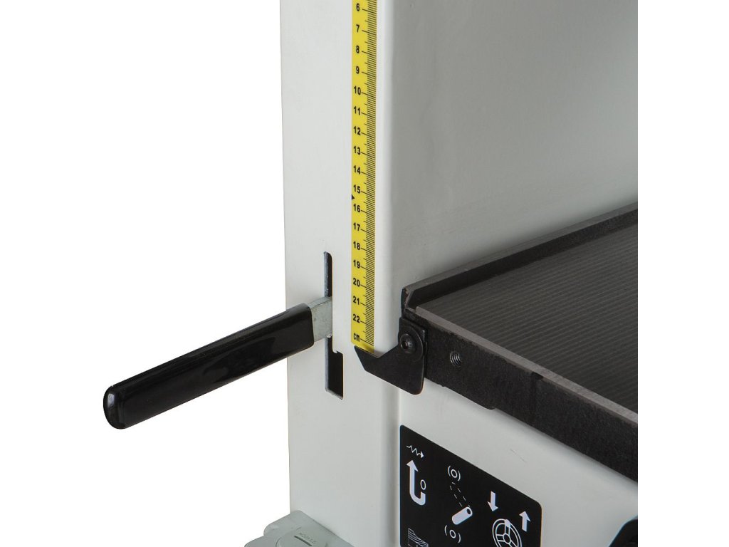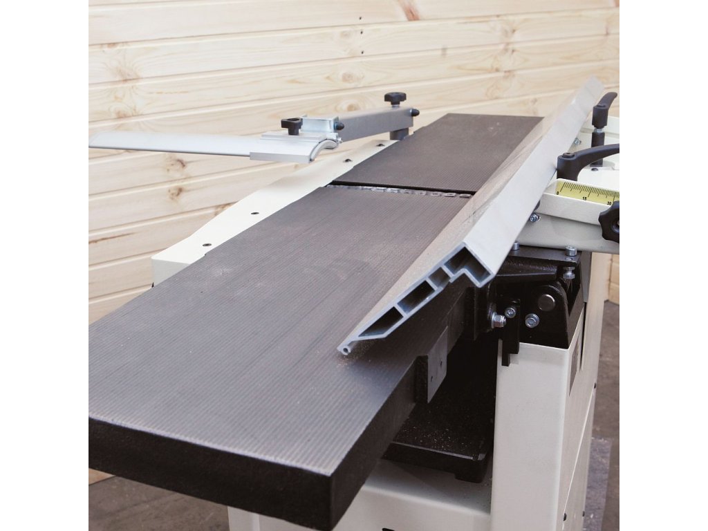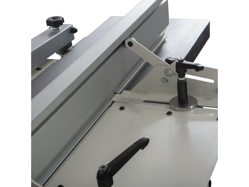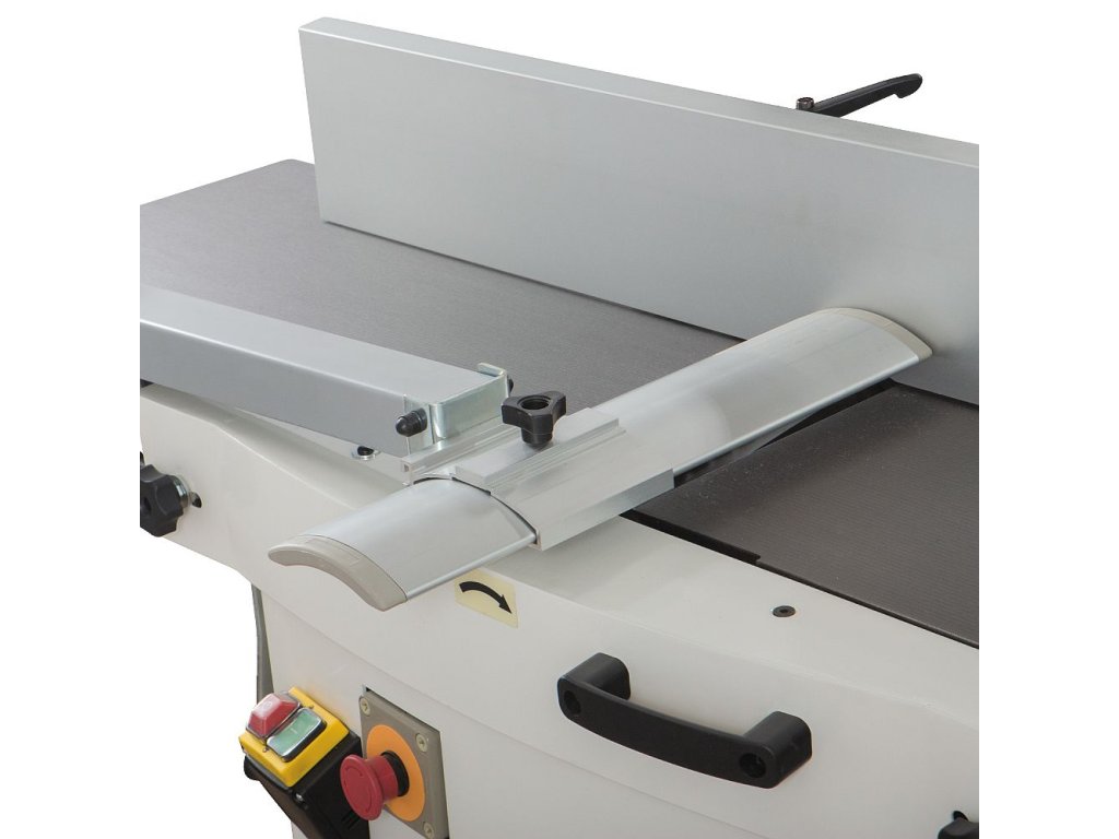 Pohodlně pouze jednou rukou lze zvednout litinový stůl. Přechod od srovnávání k tlouštkování nemůže být jednodušší. Se svým dlouhým stolem a přesným pravítkem je zde přesnost standardem, stejně jako vždy výborný povrch díky žiletkovému válci. Nastavení výšky vstupního stolu pomocí excentrické páky je jednoduché a snadné. Možnost nastavení výšky výstupního stolu excentrem. Odsávací hubice udržuje stroj čistý při připojení k vhodnému systému odsávání. Stroj pro profesionální dílny nebo údržby i kutily s širokým rozsahem použití.
