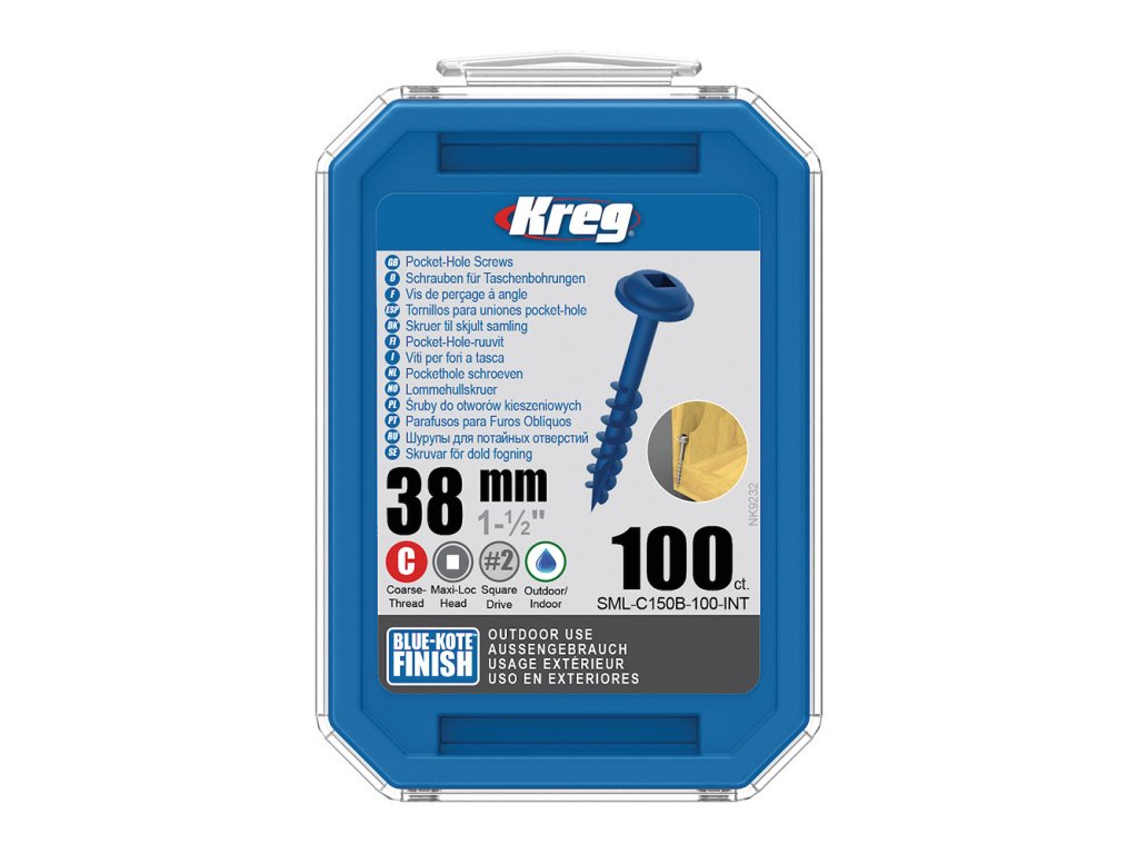 Kreg Blue-Kote Maxi-Loc Šrouby pro skryté spoje - 38 mm, hrubý závit, 100 ks