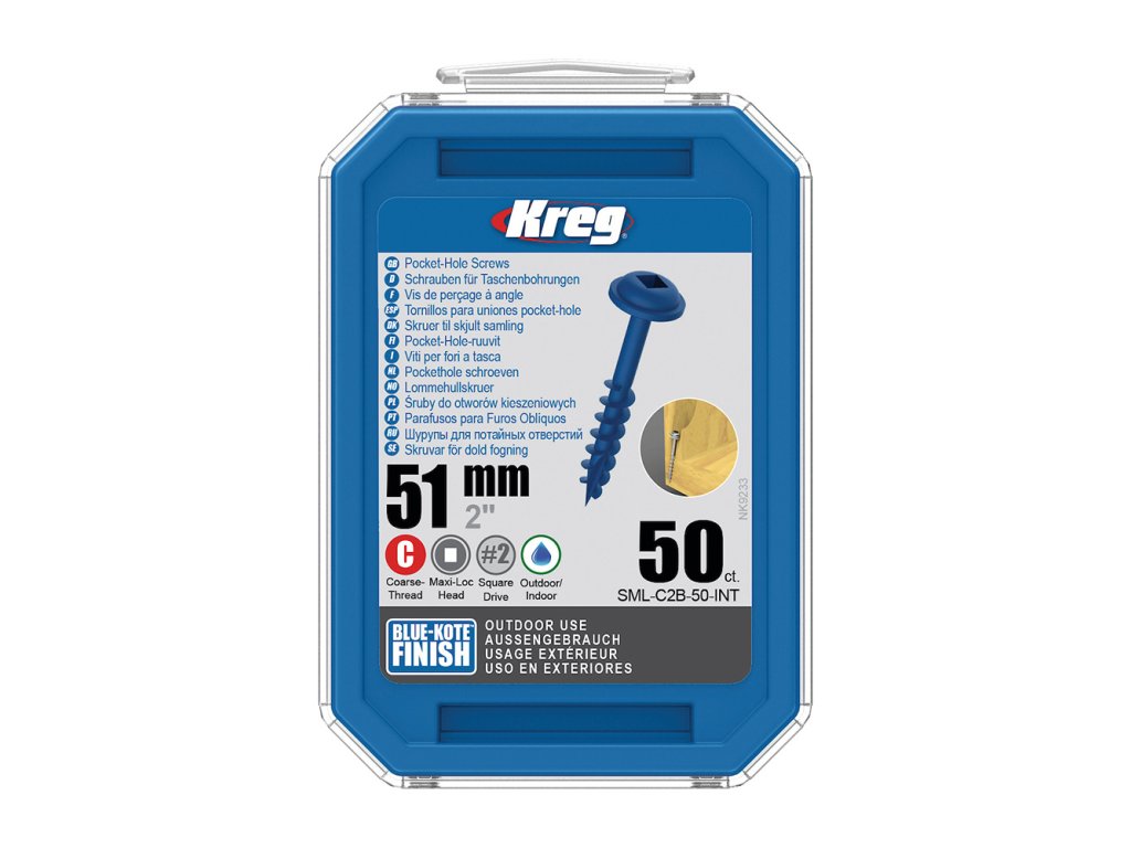 Kreg Blue-Kote Maxi-Loc Šrouby pro skryté spoje - 51 mm, hrubý závit, 50 ks