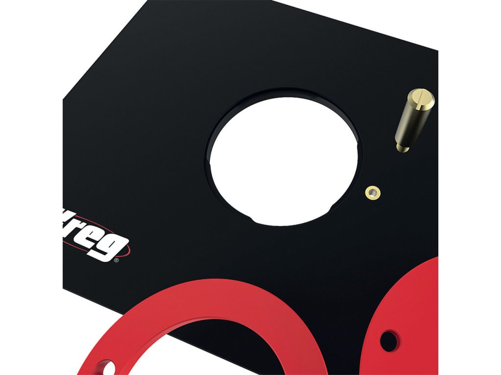 Deska je vybavena redukčními kroužky Level-Loc, které Vám umožňují snadno změnit velikost otvoru kolem frézy. Kroužky namontujete na desku pomocí dodávaného klíče.