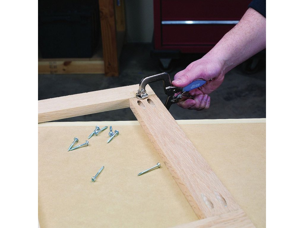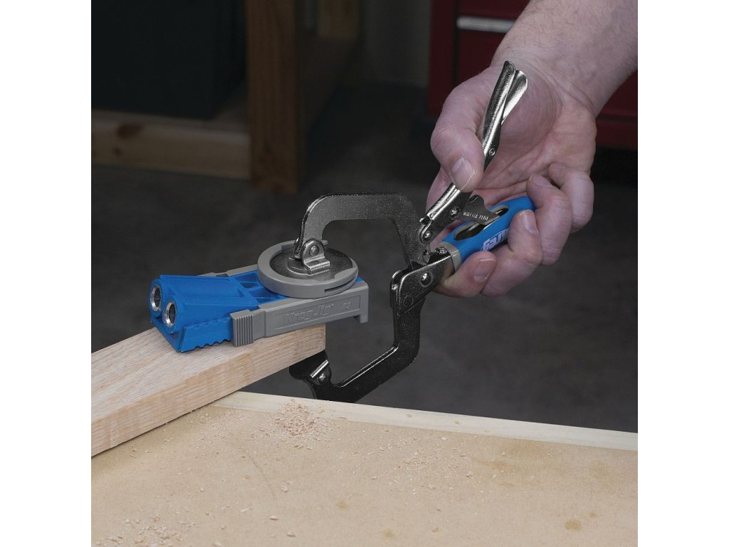Skvělá svěrka do vaší dílnyTato rychloupínací pevná svěrka se snadno vejde do stísněných prostor.Upíná materiály až do tloušťky 57 mm s dosahem 51 mm od hrany dílce.Klešťová rychloupínací svěrka vytváří dokonale ploché spoje a velký tlak, aniž by obrobek poničila. Svěrka je vybavena velkými dosedacími plochami, které rovnoměrně rozdělují upínací tlak a drží obrobky v jedné rovině, jde tedy o ideální pomůcku k přípravkům Pocket.Klešťová rychloupínací svěrka je k dispozici ve dvou velikostech: 51 mm a 76 mm. Obě mají na polstrované rukojeti šroub, kterým nastavíte svěrku na odpovídající tloušťku materiálu.• Upíná materiály s tloušťkou až 57 mm• Dosah 51 mmSoučást balení:• 51 mm Klešťová rychloupínací svěrka MICRO