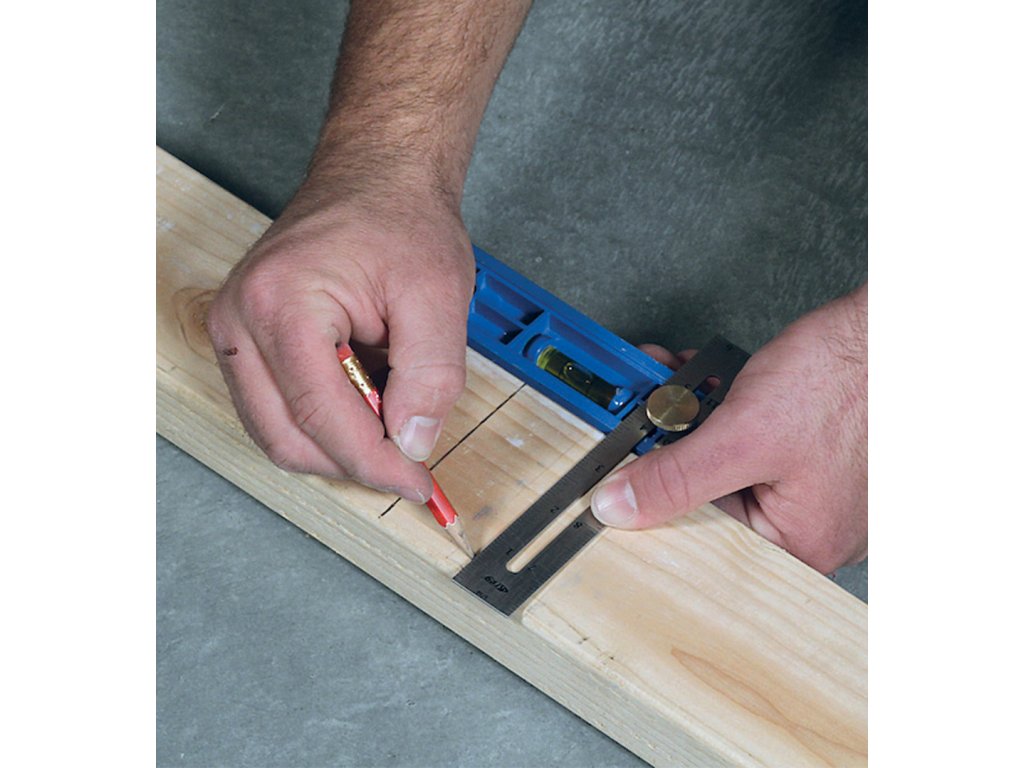 Měřicí přípravek Multi-Mark je velmi praktické univerzální měřidlo ideální pro použití v domácnosti nebo na stavbě. Stupnice lze nastavit do třech konfigurací. Přípravek má také vodováhu a plno dalších funkcí. Ať už potřebujete měřit, rozvrhnout zkosené hrany nebo vyrovnat jednotlivé dílce, s tímto přípravkem zvládnete vše.