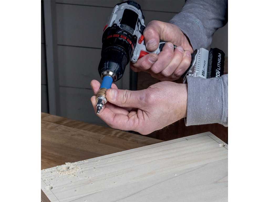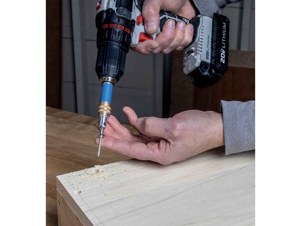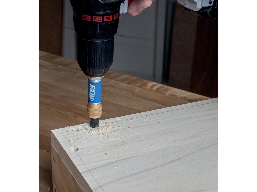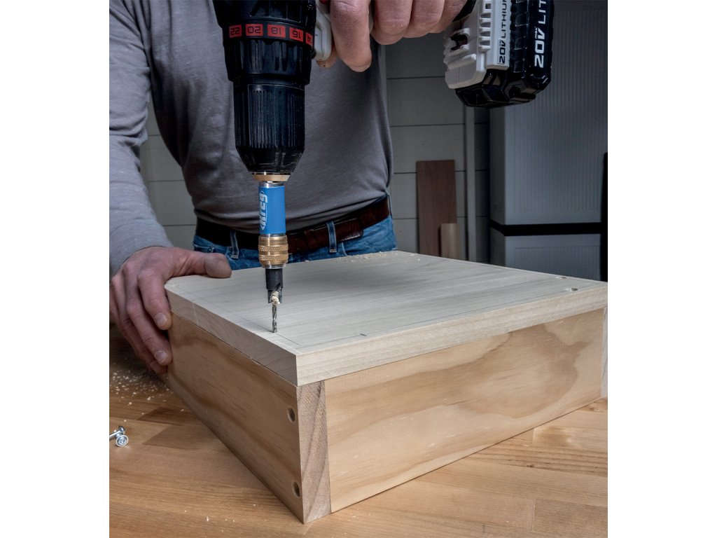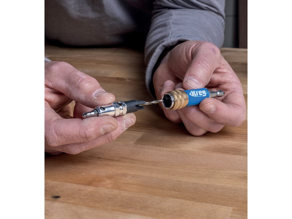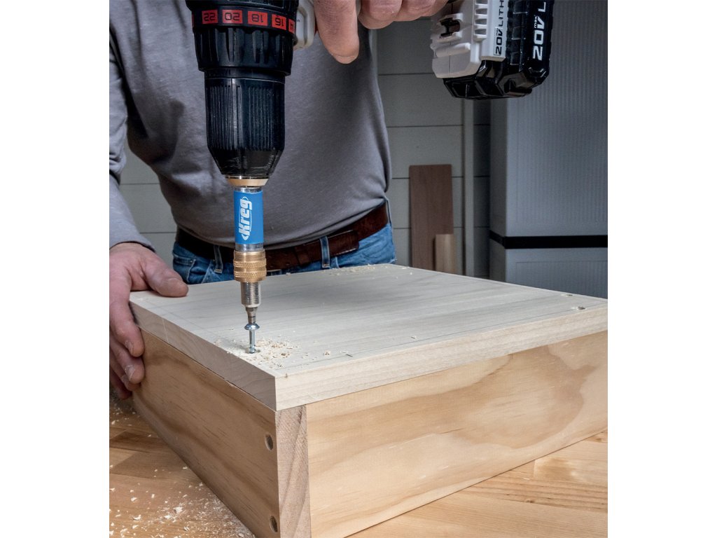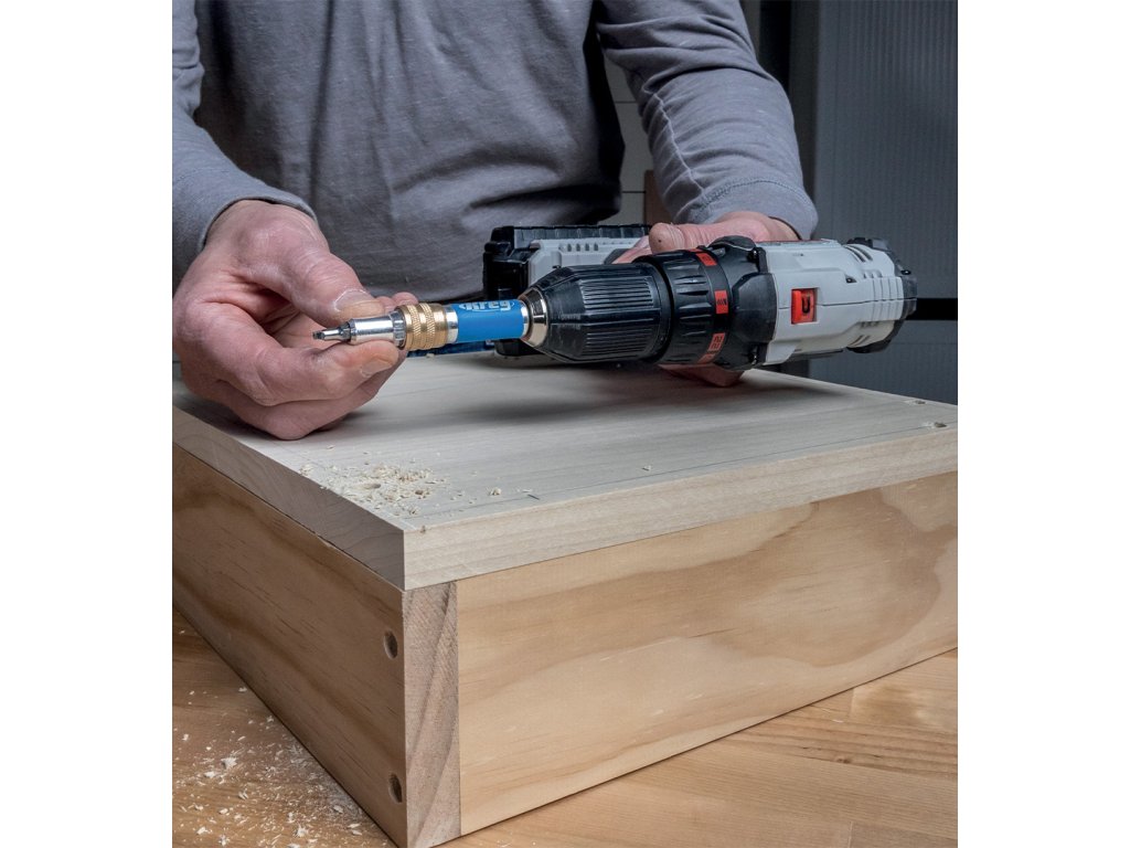 Kreg Nástavec Quick-Flip vyvrtá pevné spoje a zároveň zašroubuje Kreg Šrouby. Můžete tak rychleji vytvářet spoje za použití jednoho nástroje. Jedná se o oboustranný nástavec. Vrtákem na jedné straně si předvrtáte otvor, čtyřhranným bitem č. 2 pak zašroubujete šrouby. Tento nástavec je nepostradatelným nástrojem zejména pro Kreg Šrouby. Do předvrtaného otvoru přesně pasují Kreg Šrouby, hlava šroubu bude zapuštěná.