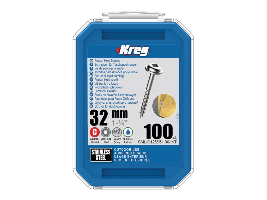 Kreg Nerez Maxi-Loc Šrouby pro skryté spoje - 32 mm, hrubý závit, 100 ks
