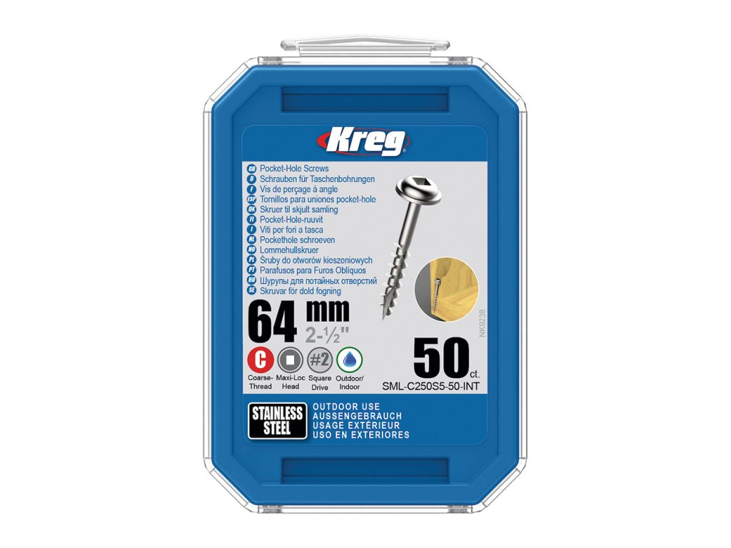 Kreg Nerez Maxi-Loc Šrouby pro skryté spoje - 64 mm, hrubý závit, 50 ks