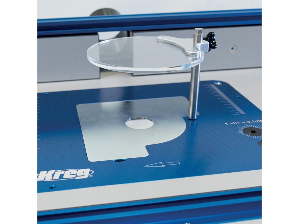 Kreg Ochranný kryt poskytne přesné vedení obrobku a bezpečné frézování - i bez podélného pravítka. Univerzální pro všechny frézovací desky nebo frézovací stolky se závitem 6,35 mm. Je kompatibilní se všemi Kreg zvedáky a frézovacími deskami. Výšku ochranného plexiskla lze upravit. Maximální výška frézování s ochranným krytem: 85 mm. Rychlá montáž, bez vrtání nebo jiných úprav.