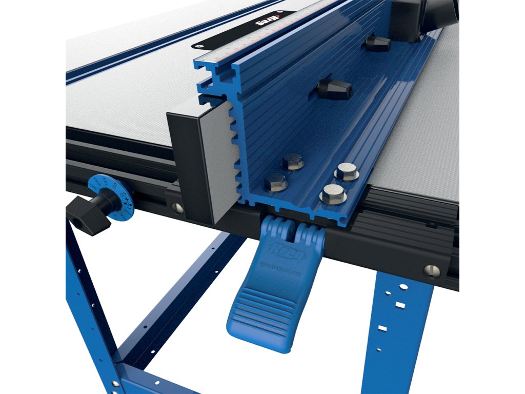 Toto přesné univerzální pravítko lze připevnit na jakýkoli frézovací stůl o tloušťce od 19 mm do 38 mm. Vytvořte si svůj frézovací stolek dle Vašich potřeb pomocí Kreg Frézovacího stolu a Kreg Multifunkčního podstavce. Nebo si vyrobte vlastní stolek a vybavte ho podélným pravítkem.