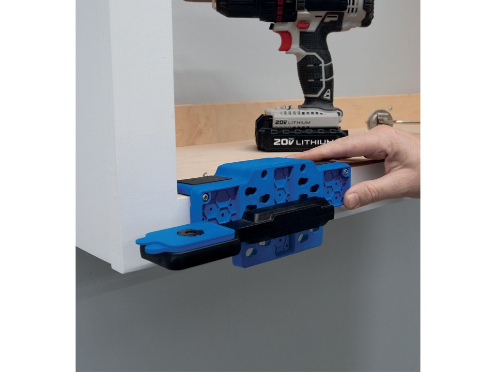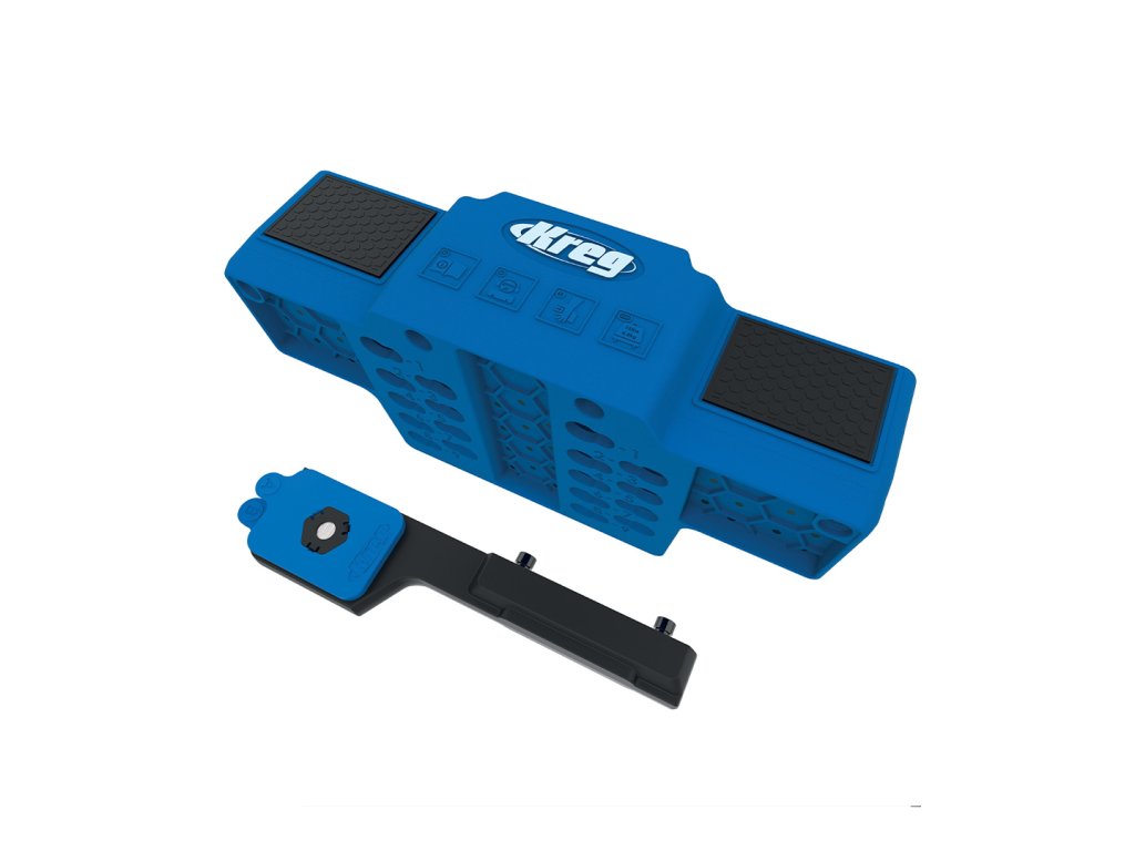 S Kreg Přípravkem pro montáž dvířek již nebudete potřebovat pomoc při montáži dvířek nebo čel skříněk. Přípravek poskytuje oporu, což Vám umožní držet dvířka jednou rukou, zatímco druhou můžete připevnit panty. Oporu lze nastavit do devíti různých poloh. Dvířka tak připevníte vždy přesně a jednoduše. Přípravek je vhodný pro montáž levých i pravých dvířek.