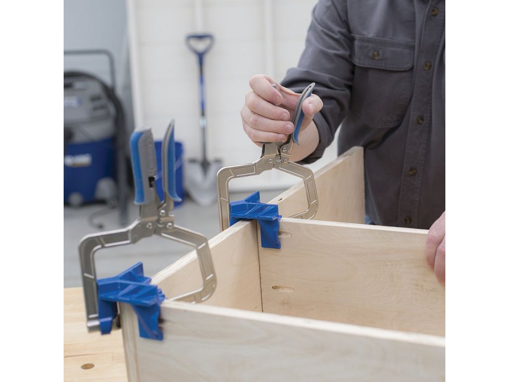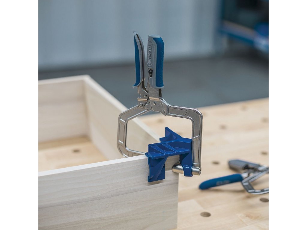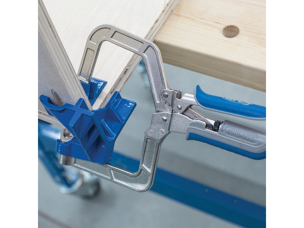 • Lze použít pro 90° rohy a T-spojení.• Automaticky se přizpůsobí tloušťce obrobku s konstantní upínací silou.• Upínací síla idividuálně nastavitelná kolečkem na rukojeti.• Robustní ocelová konstrukce pro dlouhou životnost svěrky.• Tvar V drží obrobek přesně v pravém úhlu.• Výřez na svěrce umožňuje šroubování bez demontáže svěrky.• Technologie automatického přizpůsobení Automaxx®.Při utažení sevře dílce do pravého úhlu. Pro tloušťky obrobku až do 25 mm. Umožní volné ruce při práci během spojování pomocí šroubů.• Materiál svorky: ocel• Materiálové upínací prvky: litý hliník• Upínací kapacita: až 25 mmObsah balení:• 1x 90° svěrka