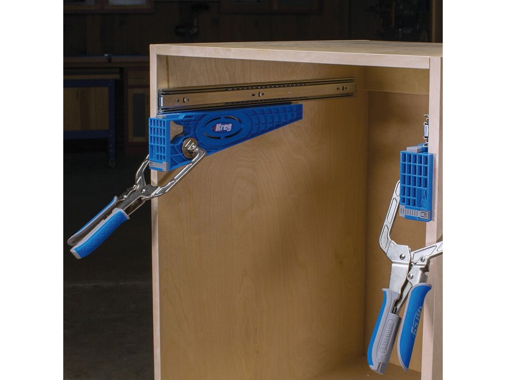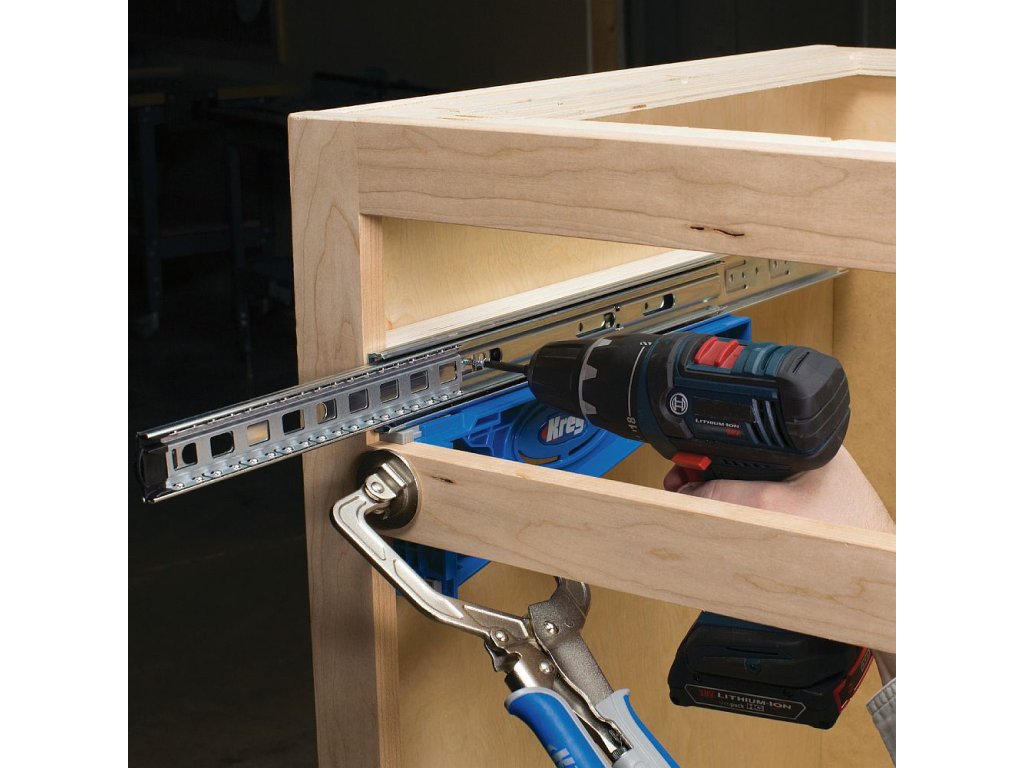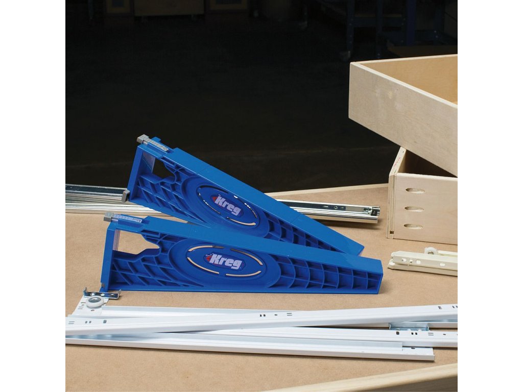 Montujte pojezdy k zásuvkám snadno a rychle.Kreg Šablona pro montáž pojezdů k zásuvkám poskytuje oporu při montáži pojezdů k zásuvkám. Šablona drží posuvy rovně a na místě a také poskytuje oporu pro zásuvky.Usnadněte si práci a zarovnejte pojezdy se skříní i zásuvkou. Při výrobě zásuvek je vždy výzvou namontovat pojezdy vodorovně a na správné místo. Vestavěné dorazy zarovnají šablonu s hranou skříně a usnadní tak montáž. Šablonu stačí upnout buď ve skříni pro montáž pojezdů nebo mimo skříň pro poskytnutí opory pro zásuvku při montáži pojezdu k zásuvce.Šablona je navržena tak, aby byla intuitivní pro začátečníky i dostačující pro profesionály. Jediné, co potřebujete, jsou pojezdy, svěrka a šablony.• Pro čelní i bezrámové skříně• Délka pojezdů: 30,5 cm a více• Dorazy: 2 na každé šabloně• Minimální hloubka: 355 mmSoučást balení• Šablona 2 ks• Horní/dolní posuvníky — nainstalovány 4 ks