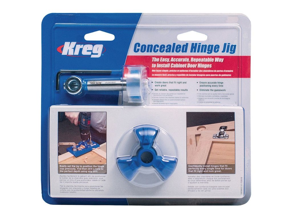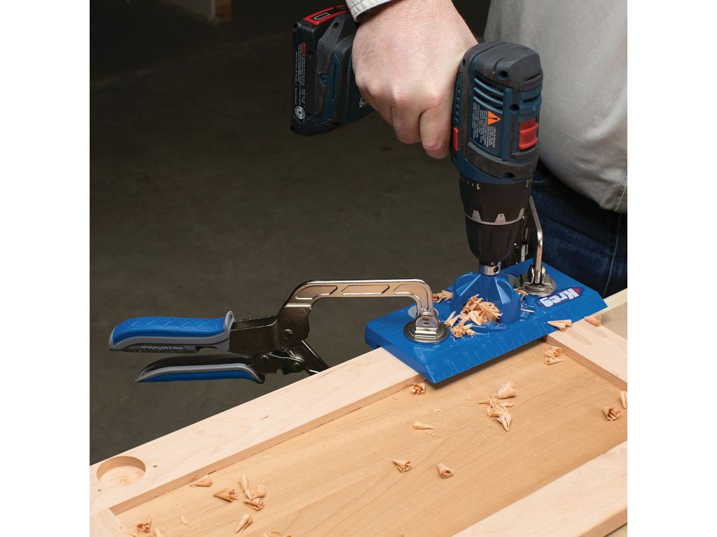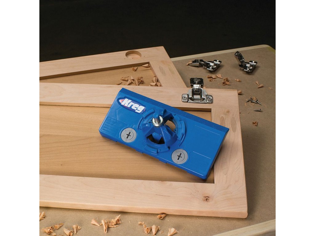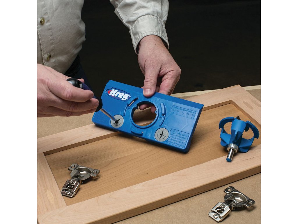 Kreg Šablona pro vrtání otvorů pro misky pantů umožňuje vyvrtat misky pomocí jakékoli ruční vrtačky. V šabloně je pevně umístěn sukovník z tvrdokovu. Díky dorazu pokaždé vrtáte do stejné hloubky.