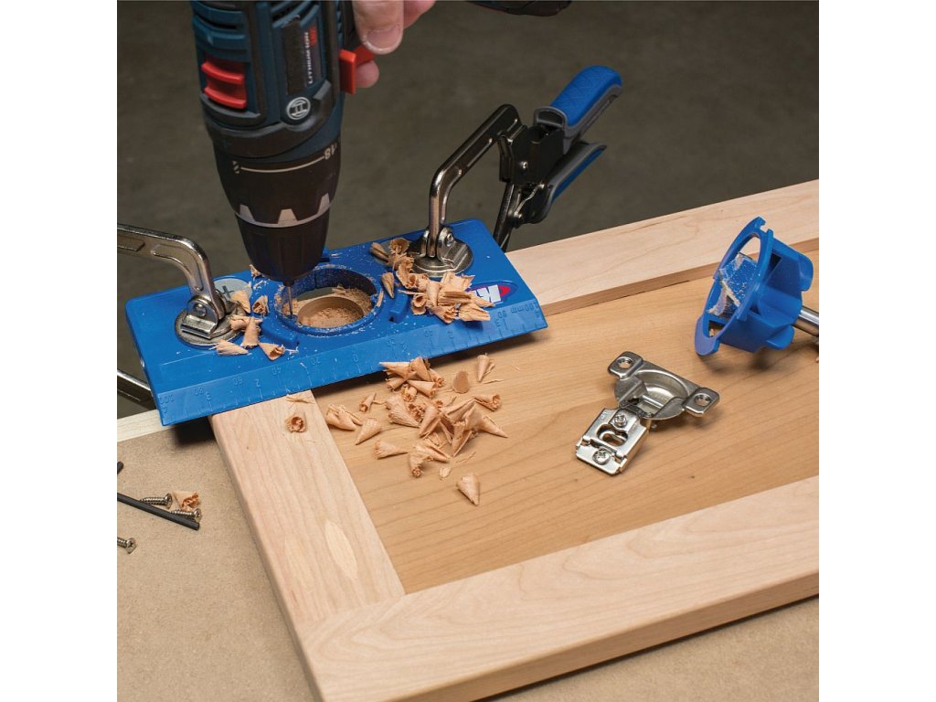Šablona je navržena tak, aby byla intuitivní pro začátečníky i dostačující pro profesionály. Vyberte si panty, prostudujte montážní pokyny a nastavte šablonu otočením excentrů. Poté jste připraveni vyvrtat otvory pro misky pantů použitím jakékoliv vrtačky. Ať už montujete jedny dvířka skříně nebo vyrábíte dvířka pro celou kuchyň, šablona pro vrtání otvorů pro misky pantů poskytuje spolehlivé a konzistentní výsledky a jde tedy o ideální pomůcku pro montáž nábytku a kuchyní.