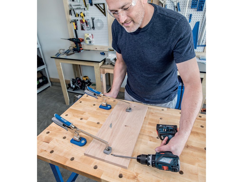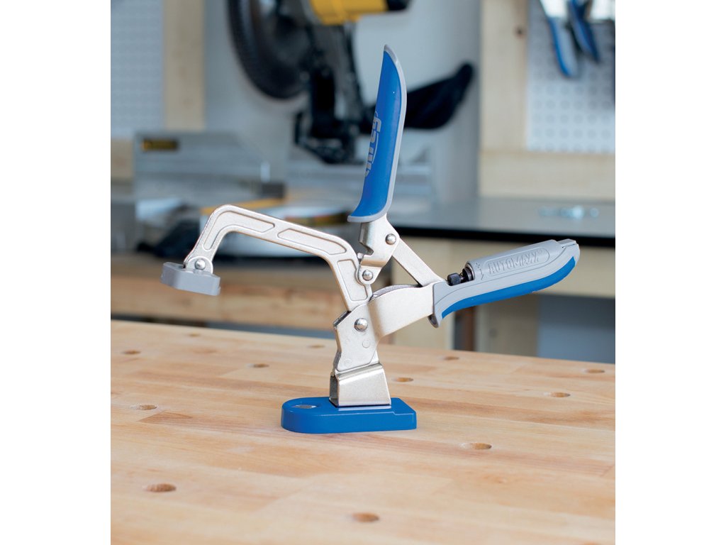 Stolní svěrka Automaxx je ideální pro práci s Kreg produkty, vhodná pro montáže, frézování, řezání, broušení, vrtání a jiné práce se dřevem. Díky technologii Automaxx se svěrka automaticky přizpůsobí tloušťce materiálu pouhým stiskem rukojetí.