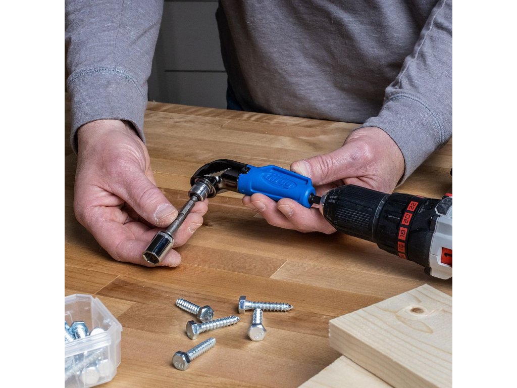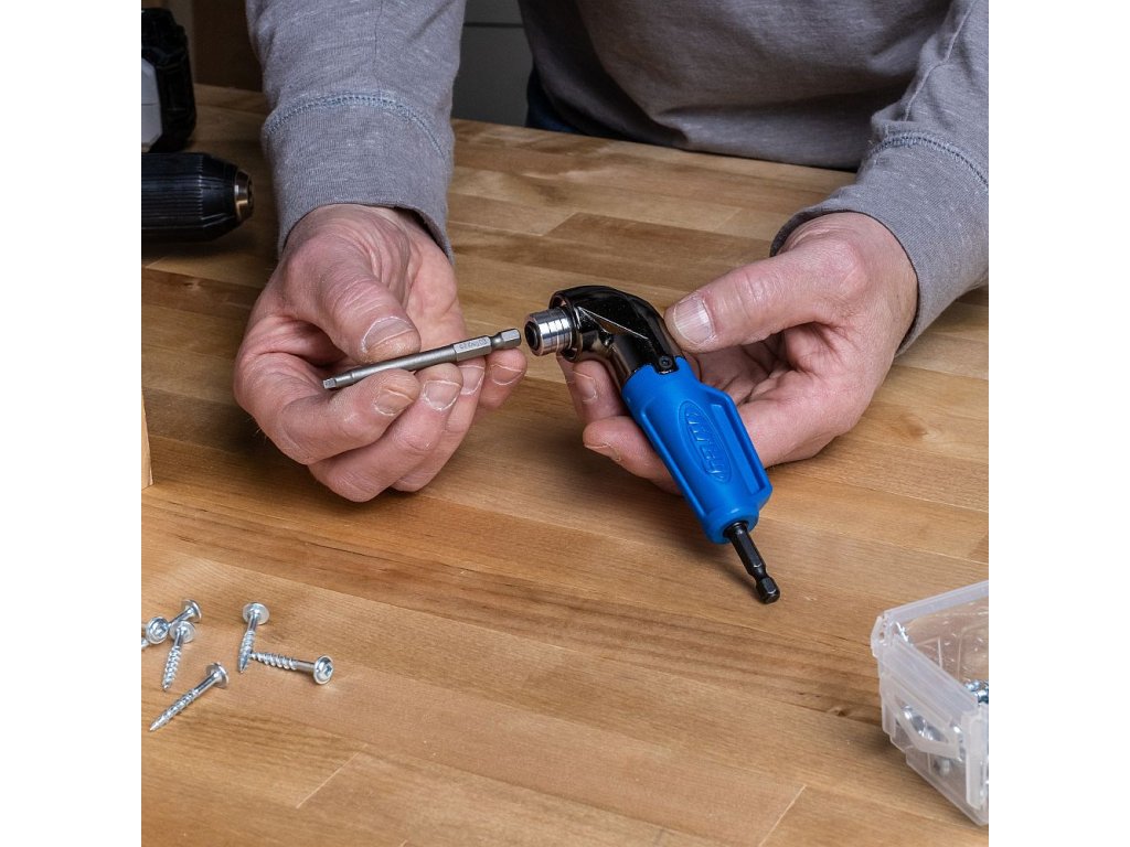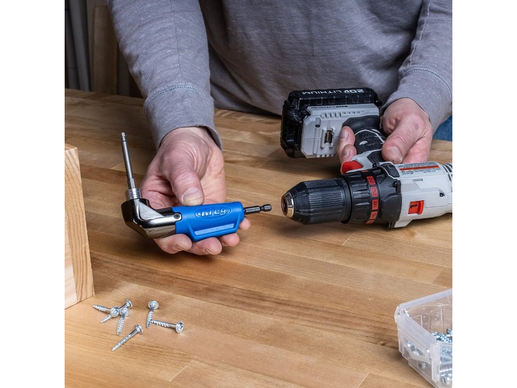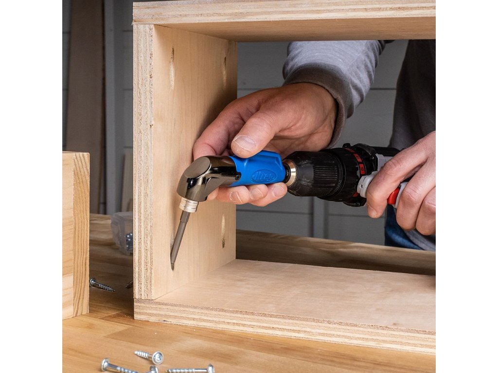 • Šroubování v těsných místech s jakýmkoli šestihranným bitem, ideální pro skryté šroubové spoje.• Dodáváno s 75 mm magnetickým čtyřhranným bitem.• Ergonomický design, snadná manipulace.Kreg Úhlový nástavec na bity 90° Vám umožní šroubovat v místech, do kterých běžně s vrtačkou nedosáhnete. Nástavec je dodávaný s 75 mm magnetickým čtyřhranným bitem, který zapadne do hlavy šroubu a nevyklouzne - takže Vám usnadňuje šroubování skrytých šroubových spojů. Nástavec lze také použít s jakýmkoli bitem s šestihrannou stopkou. Díky ergonomickému designu nástavec pohodlně uchopíte jednou rukou, zatímco druhou ovládáte vrtačku. Při šroubování v těsných místech se na Kreg Úhlový nástavec můžete vždy spolehnout.