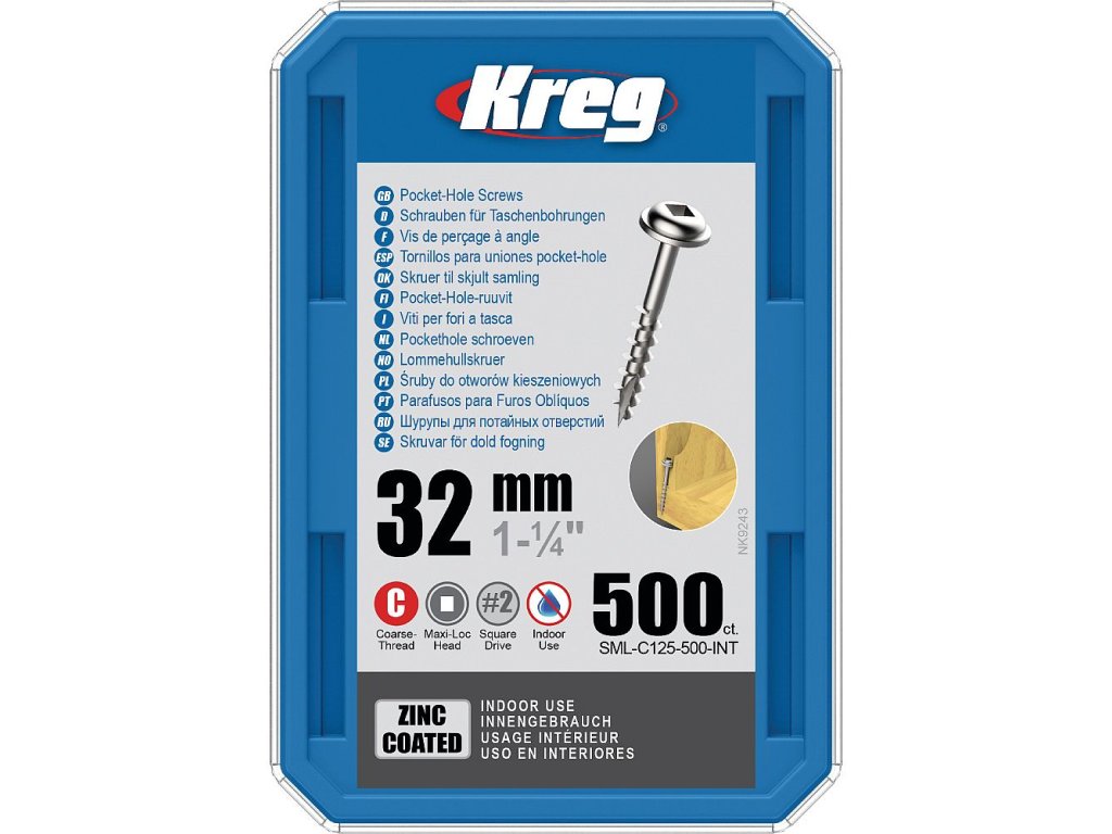 Kreg Zinc Maxi-Loc Šrouby pro skryté spoje - 32 mm, hrubý závit, 500 ks