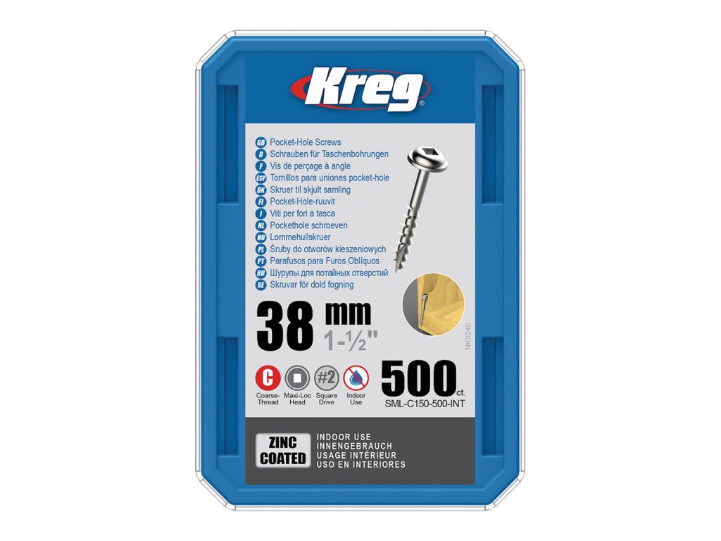 Kreg Zinc Maxi-Loc Šrouby pro skryté spoje - 38 mm, hrubý závit, 500 ks