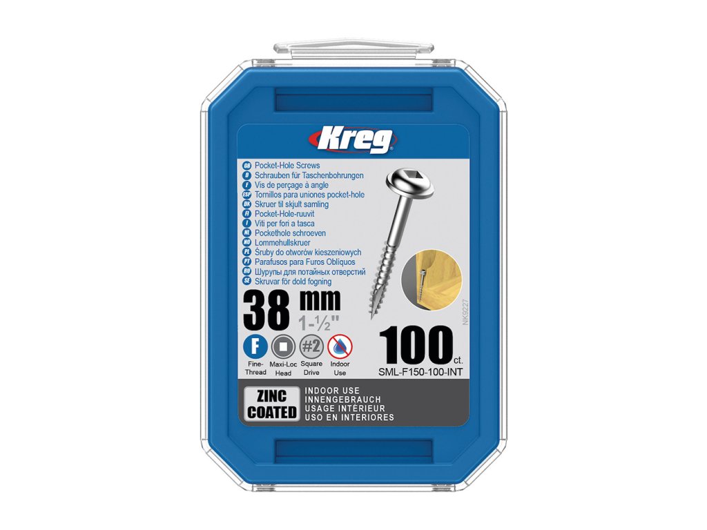 Kreg Zinc Maxi-Loc Šrouby pro skryté spoje - 38 mm, jemný závit, 100 ks