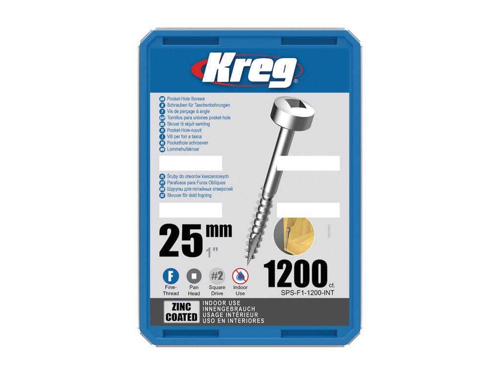 Kreg Zinc Pan-Head Šrouby pro skryté spoje - 25 mm, jemný závit, 1200 ks