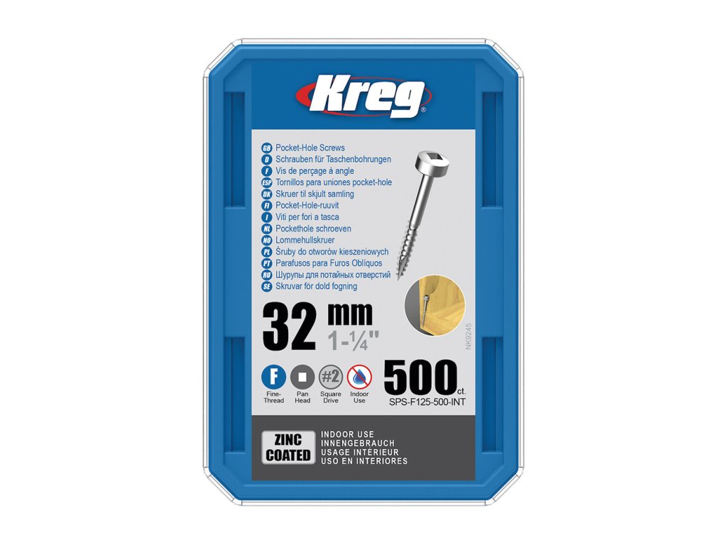 Kreg Zinc Pan-Head Šrouby pro skryté spoje - 32 mm, jemný závit, 500 ks