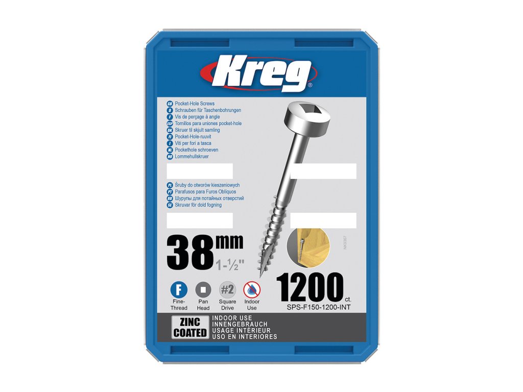 Kreg Zinc Pan-Head Šrouby pro skryté spoje - 38 mm, jemný závit, 1200 ks