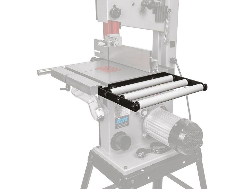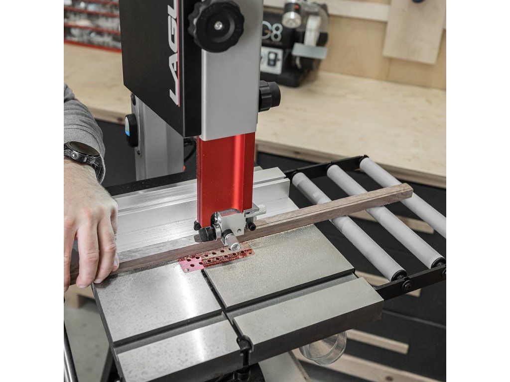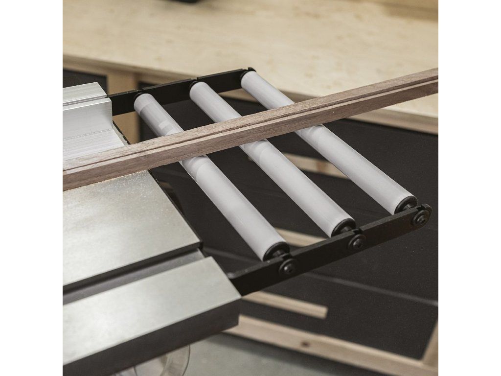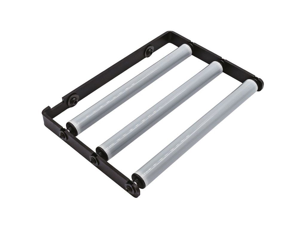 Výstupní stůl se třemi rolnami pro pásovou pilu Laguna V10 podepírá řezaný materiál. Zajišťuje plynulý posun obrobku, snižuje fyzickou námahu obsluhy a pomáhá udržet správné vedení a zarovnání materiálu během i po řezání. Výstupní stůl se jednoduše montuje k litinovému stolu pily pomocí 2 šroubů.