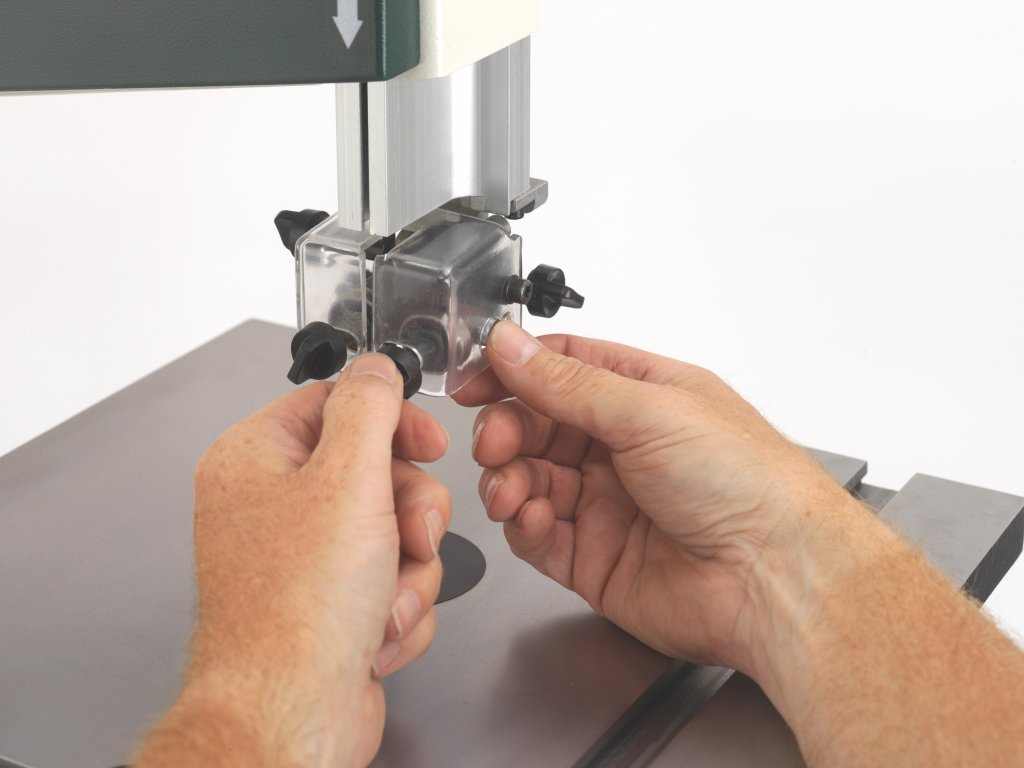 Vodicí ložiska pilového pásu s pružinovým vedením lze rychle a snadno nastavit bez použití nářadí.