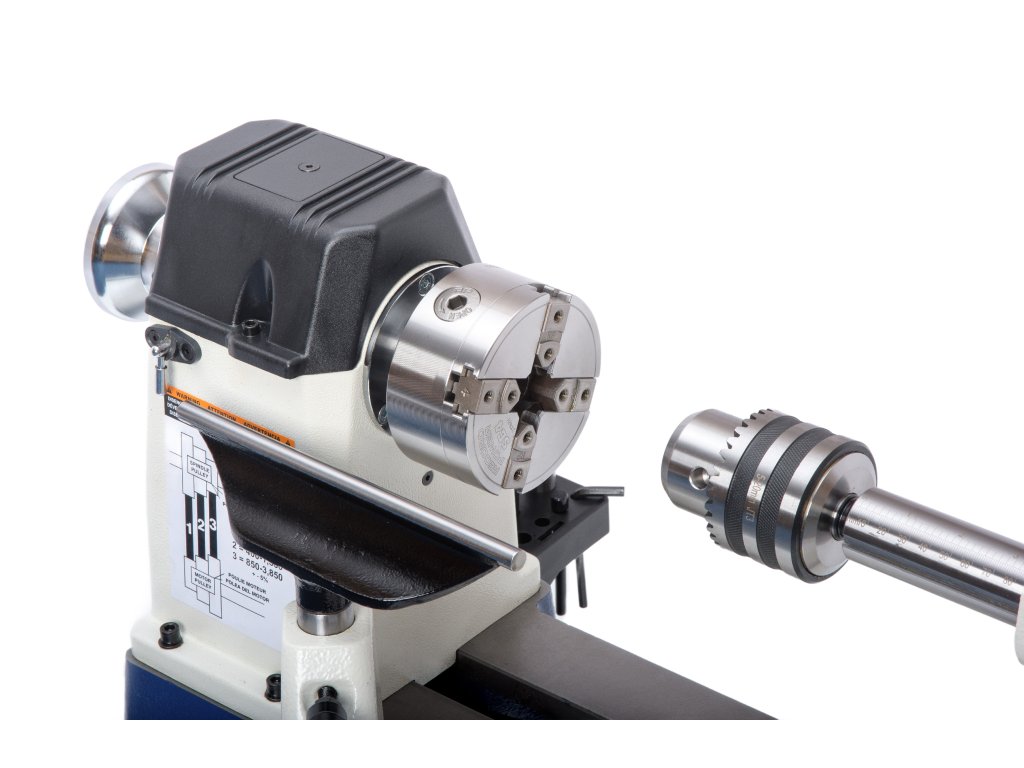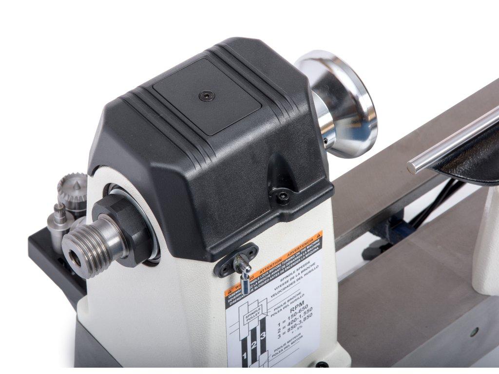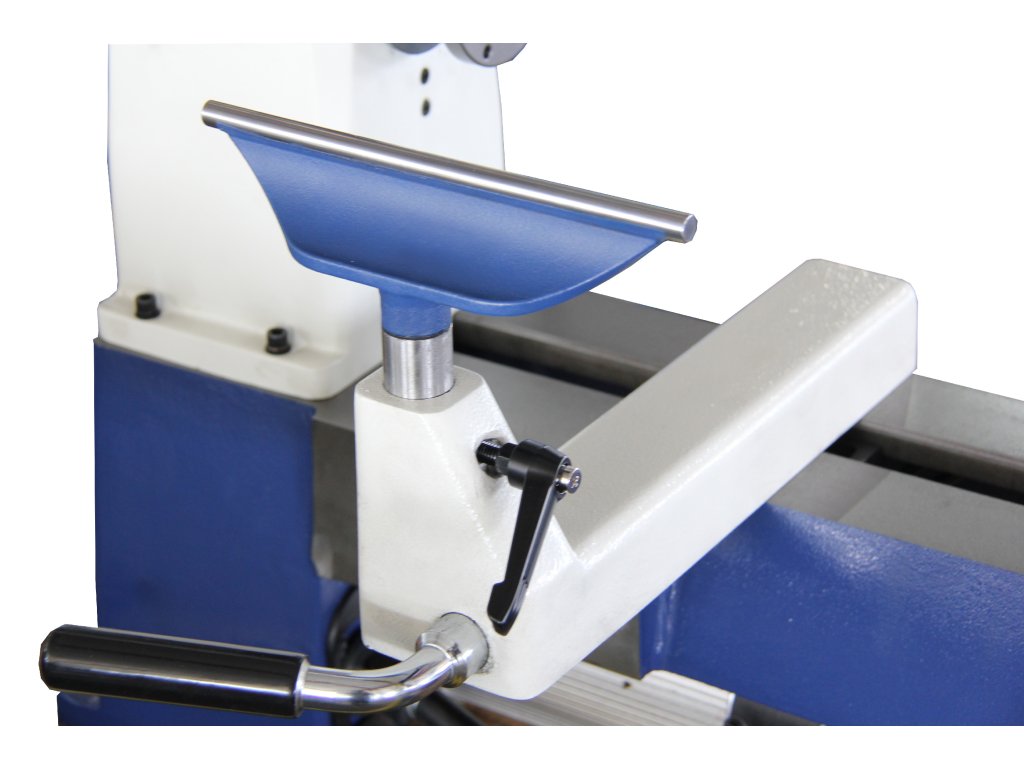 Kvalitní detaily zahrnují 20cm litinovou podpěrku se zpevněným okrajem z tvrzené oceli a indexaci vřetene ve 24 bodech. Vaše příslušenství budete mít vždy po ruce díky praktickému odkládacímu držáku. Soustruh lze navíc snadno rozšířit o stojan, prodloužení a osvětlení pro ještě efektivnější práci.