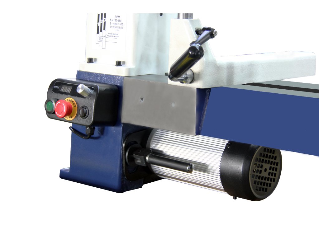 Dalším z prvků, který na první pohled zaujme je ergonomický a na magnetech umístěný ovládací panel, který lze umístit na jakékoliv místo na soustruhu včetně voličem otáček. Soustruh pracuje v rychlostech 250-850, 430-1450, 950-3200 otáček za minutu. Otáčky se ovládají plynule ovladačem a ovládacím panelu. Motor soustruhu je vybaven technologií, která zaručuje vysoký točivý moment i za nízkých otáček.