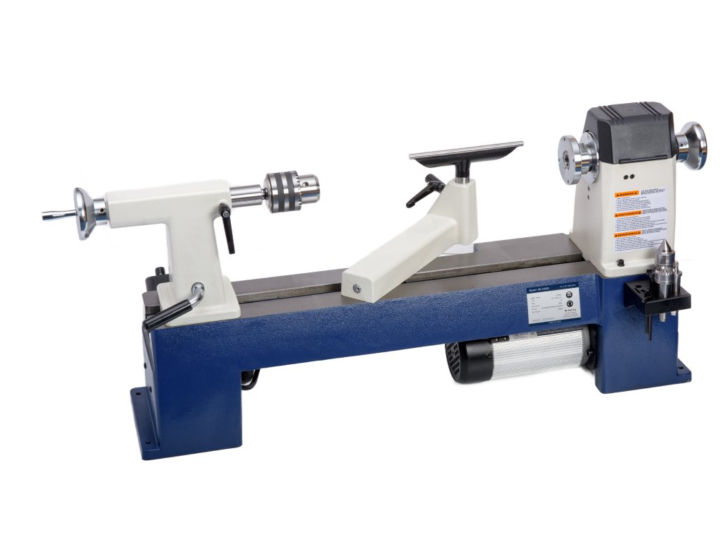 Celo-litinový soustruh na dřevo s měničem otáček.