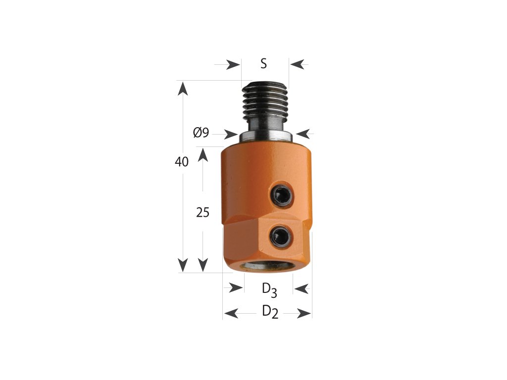 Upínací pouzdro 358 s válcovou dosedací plochou d9, M8 - pro vrták S10, D19,5x25x40 M8 L
